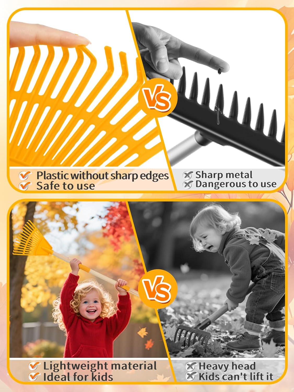 - Great Tool for Spending Funny Family Time: Our rakes for leaves are perfect for parent-child yard projects! Clean up leaves, grass, or garden debris together while teaching kids responsibility and environmental care through a hands-on activity.