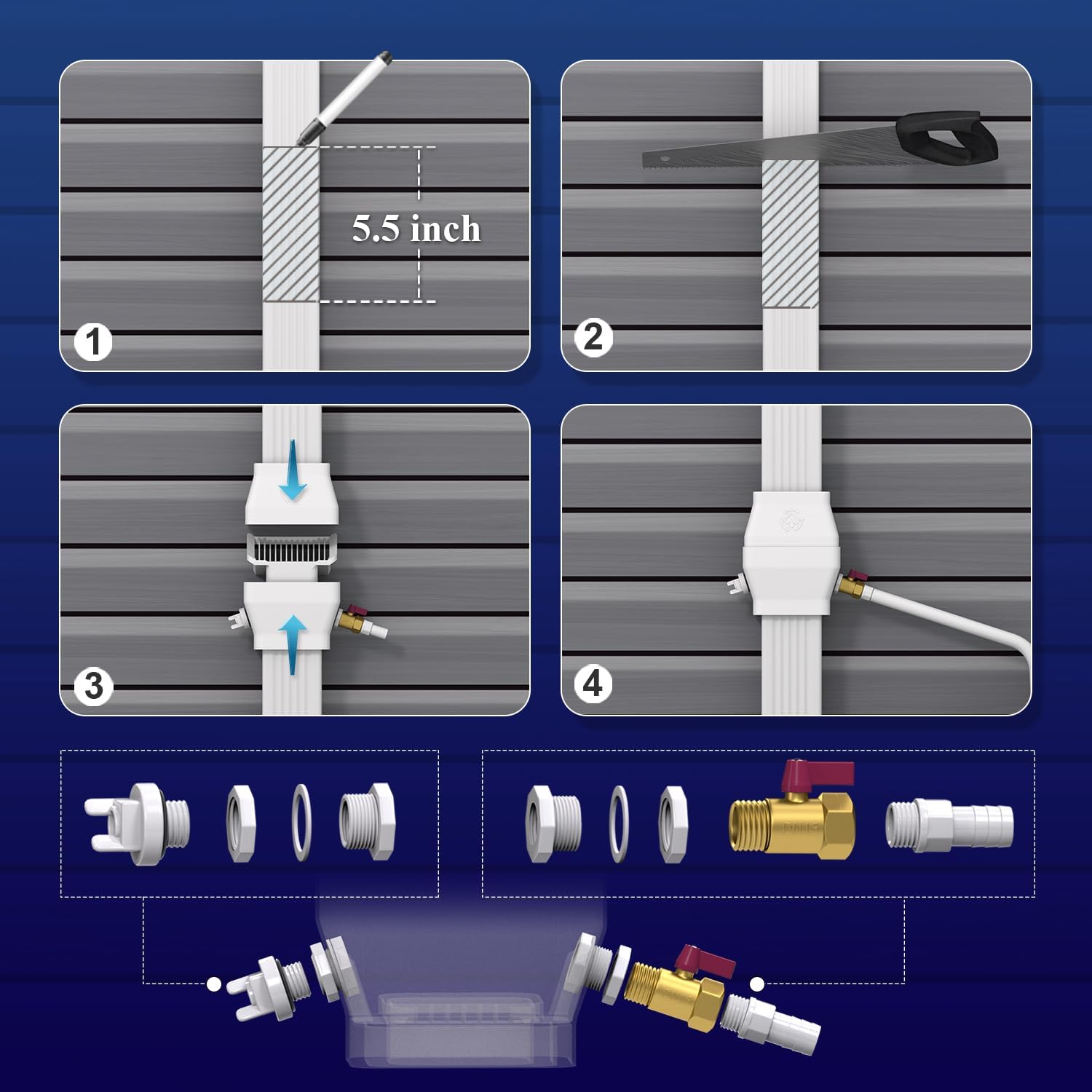 - Comes with a brass water valve kit, allowing you to stop the flow of water for winterizing or when the barrel is full.