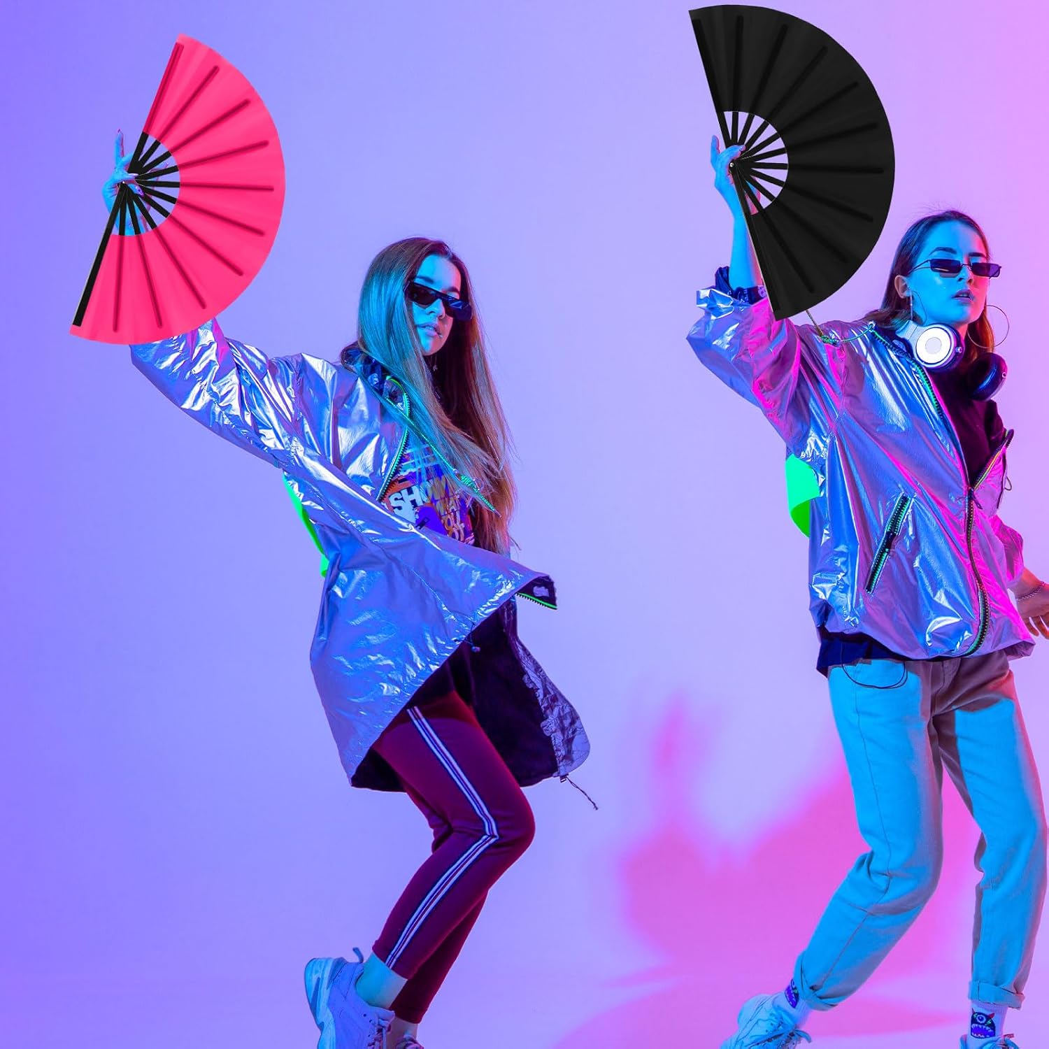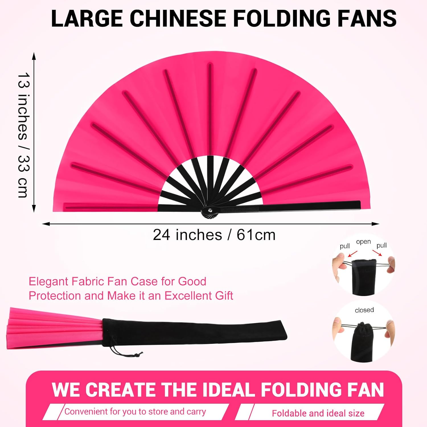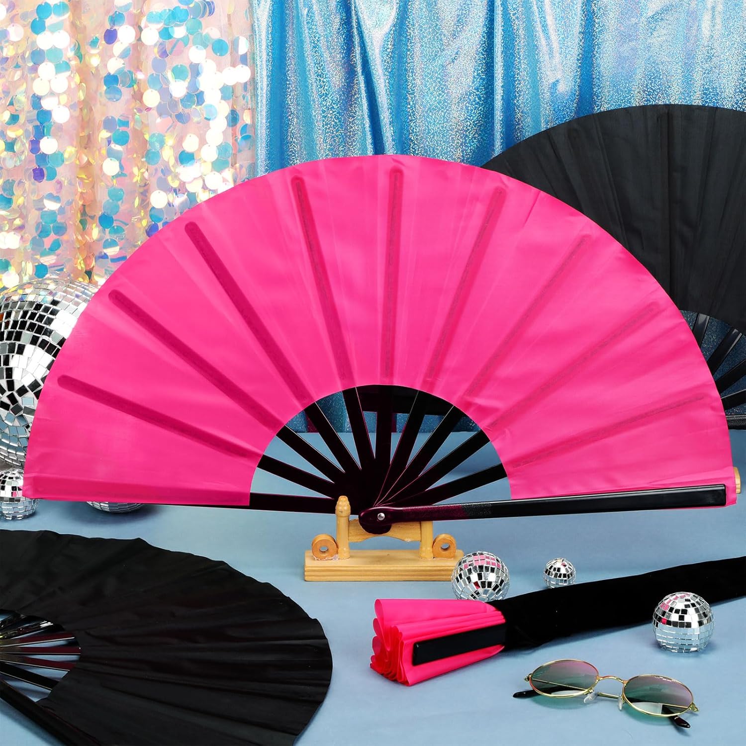 Blulu 4 Pcs 13 Inch Large Folding Hand Fans for Line Dancing Big Clapping Popping Raves Fans Bulk for Dancing Boots on The Ground Festival Party Decoration(Classic Style, Black, Rose Pink)