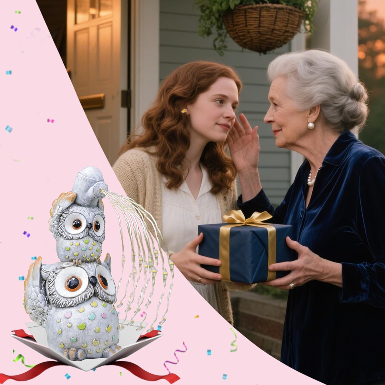 - Funny Owl Garden Statues:Charming owl decor feature a mother owl lifting her baby to water plants, adding warmth and joy to any outdoor space. The twinkling lights mimic flowing water cascading over flowerbeds and lawns, creating a magical effect. Perfect garden decorations for patios, porches, yards, balconies, fences, or walkways, enhancing your outdoor garden decor.