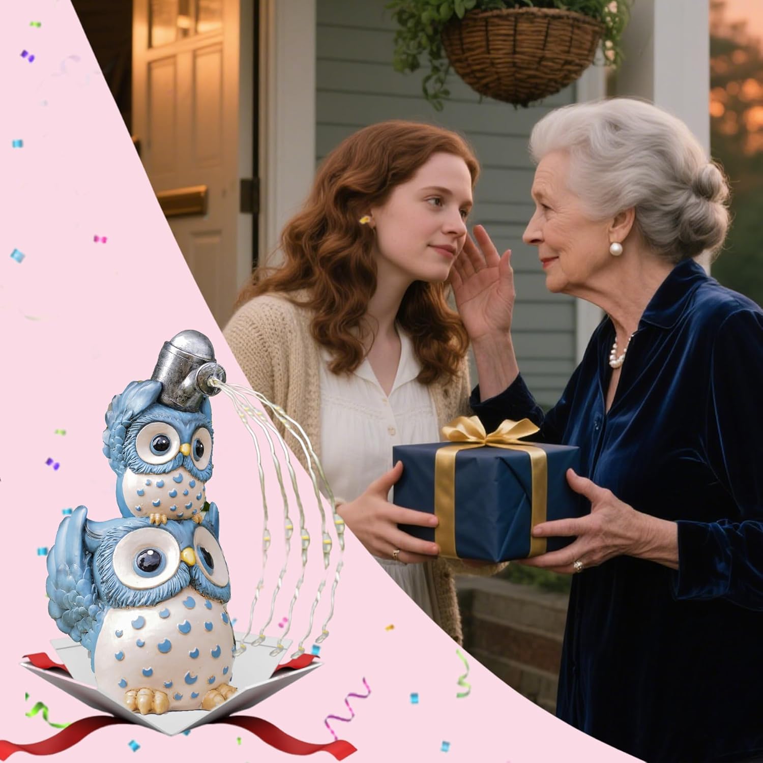 - Funny Owl Garden Statues:Charming owl decor feature a mother owl lifting her baby to water plants, adding warmth and joy to any outdoor space. The twinkling lights mimic flowing water cascading over flowerbeds and lawns, creating a magical effect. Perfect garden decorations for patios, porches, yards, balconies, fences, or walkways, enhancing your outdoor garden decor.