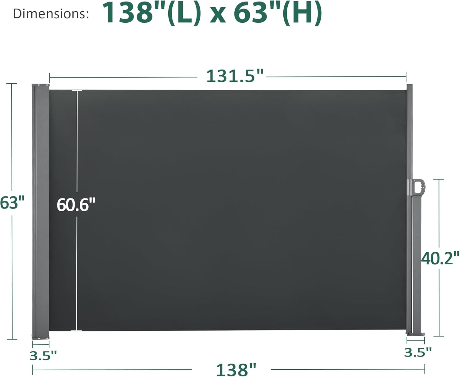 Macrout Retractable Side Awning for Patio & Balcony – Waterproof UV-Resistant Outdoor Privacy Screen, Folding Wind Block for Deck, Porch, Garden (Dark Grey, 138" x 63")