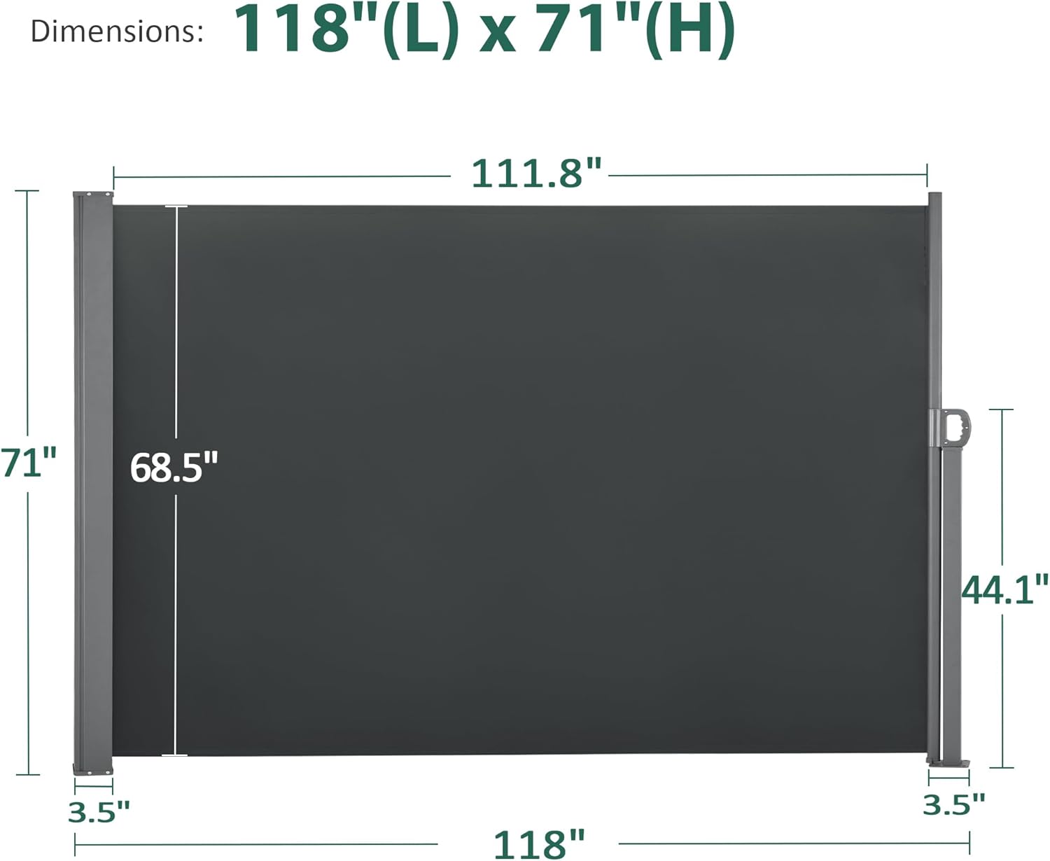 Macrout Retractable Side Awning for Patio & Balcony – Waterproof UV-Resistant Outdoor Privacy Screen, Folding Wind Block for Deck, Porch, Garden (Dark Grey, 118" x 71")