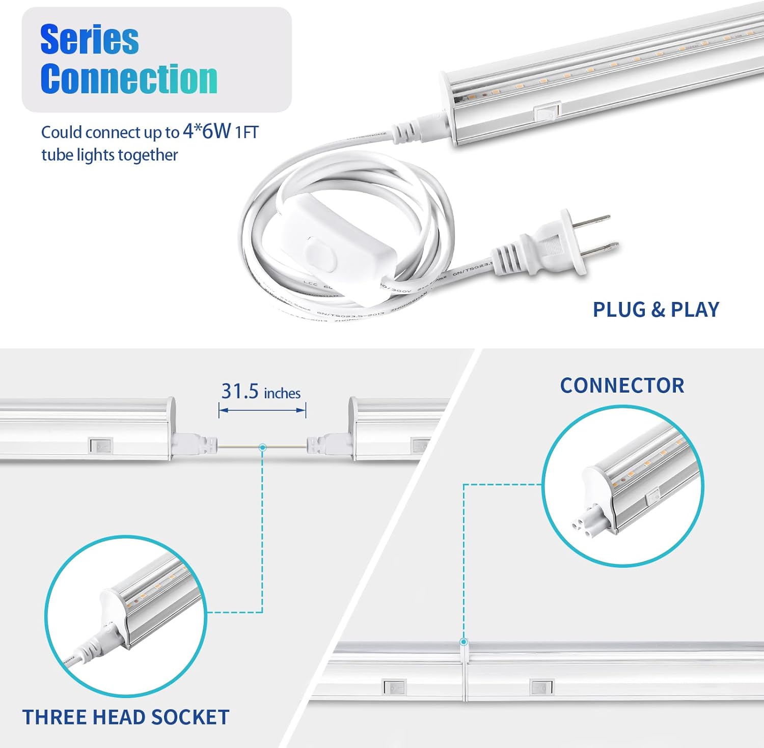 1FT T5 4-Pack Grow Lights for Indoor Plants, 3000K Warm Full Spectrum LED , Plant Grow Lamps with Side Switch, Suitable for Greenhouse Seed Starting, Vegetables, Plug and Play, Easy Installation