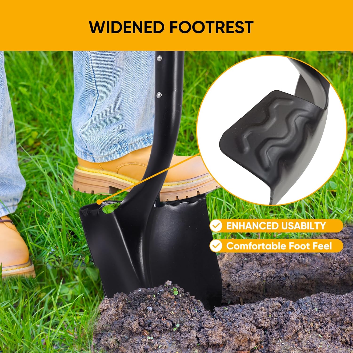 - DURABLE CONSTRUCTION: Round point steel blade with powder-coated finish for rust resistance and long-lasting performance in tough digging conditions