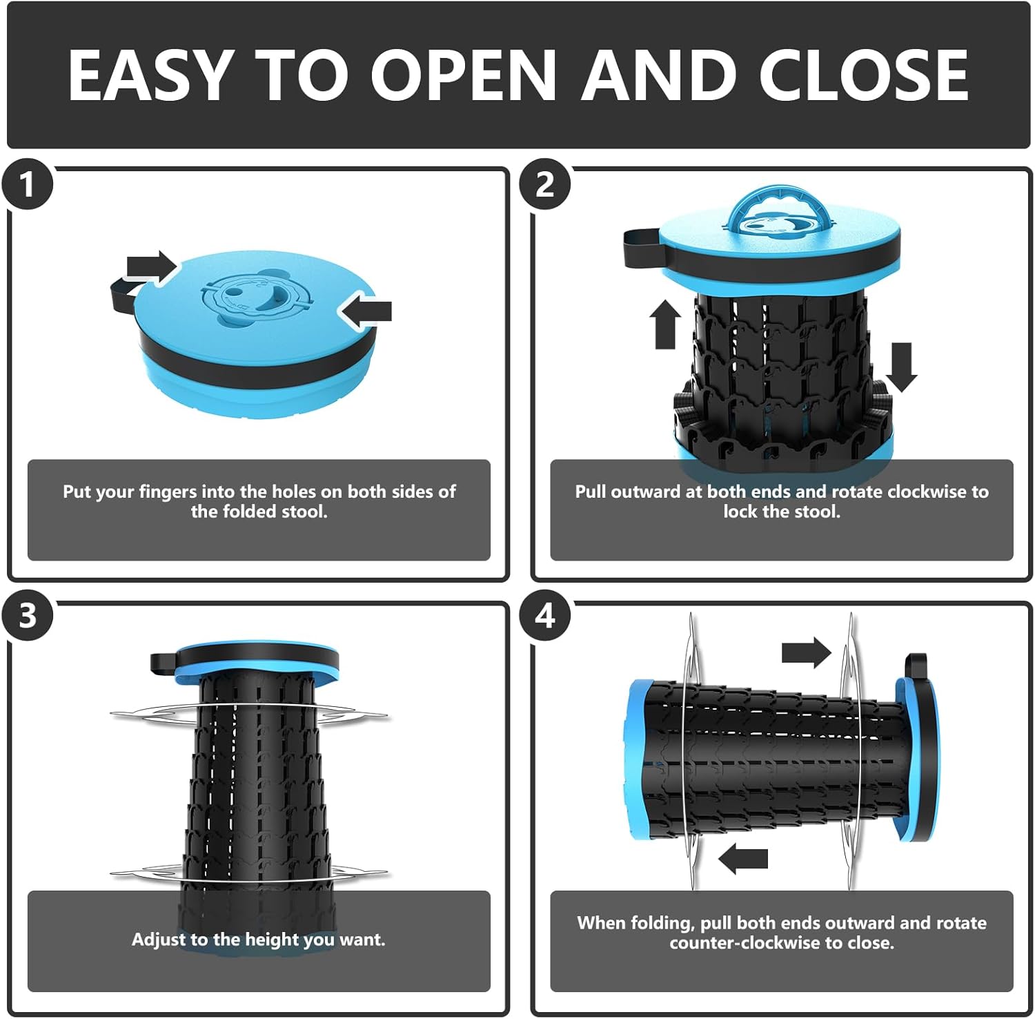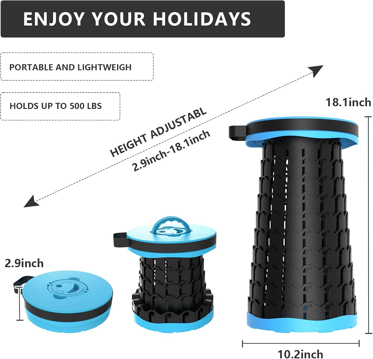 Upgraded Collapsible Stool with Max Load Capacity 330lbs Portable Telescoping & Folding Design Retractable Seat for Camping, Gardening, Fishing & Outdoor Adventures (Blue)