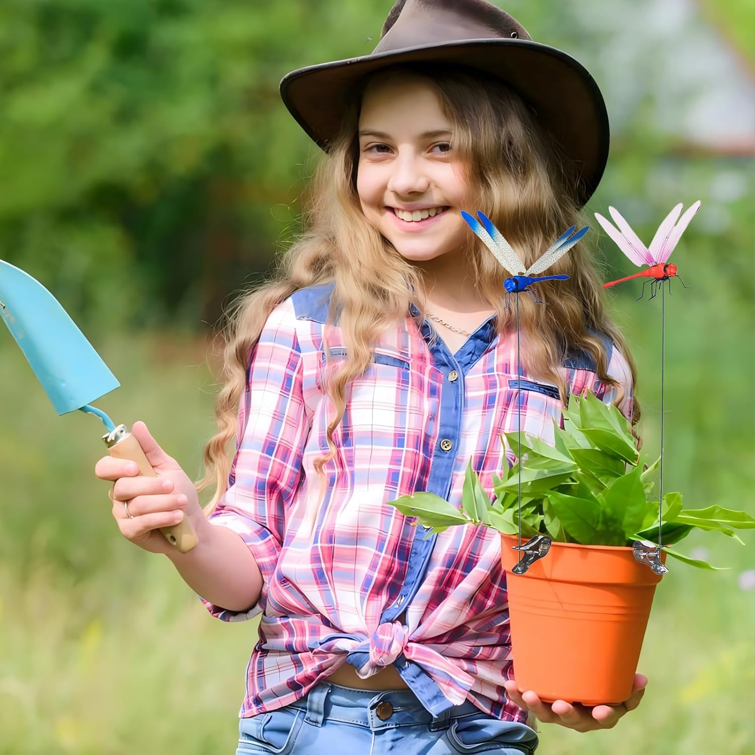 Jongdari 12 Sets Dragonfly Hat Clip Realistic Fake Dragonflies Clip-On Garden Outdoor Decor Stakes Plastic Dragon Fly Clips Plant Decorations for Pots, Includes Pliers & Clips