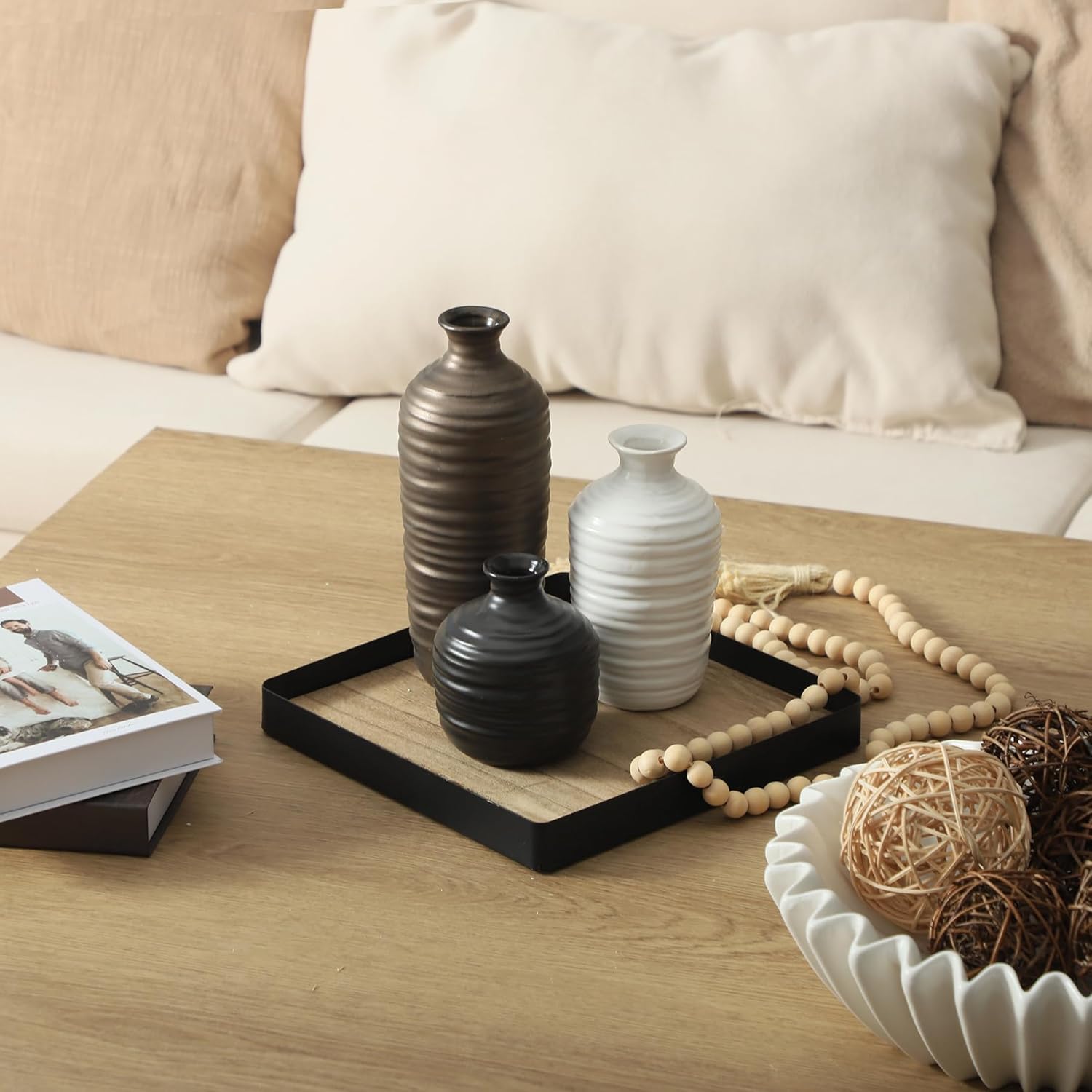 - 【Decor That Works Anywhere】With clean lines and neutral tones—black, bronze, and ivory—these vases blend beautifully with farmhouse, boho, rustic, modern, or minimalist décor. Perfect for mantels, dining tables, entryways, shelves, office desks, bathrooms, or bedrooms—wherever you need a tasteful touch.