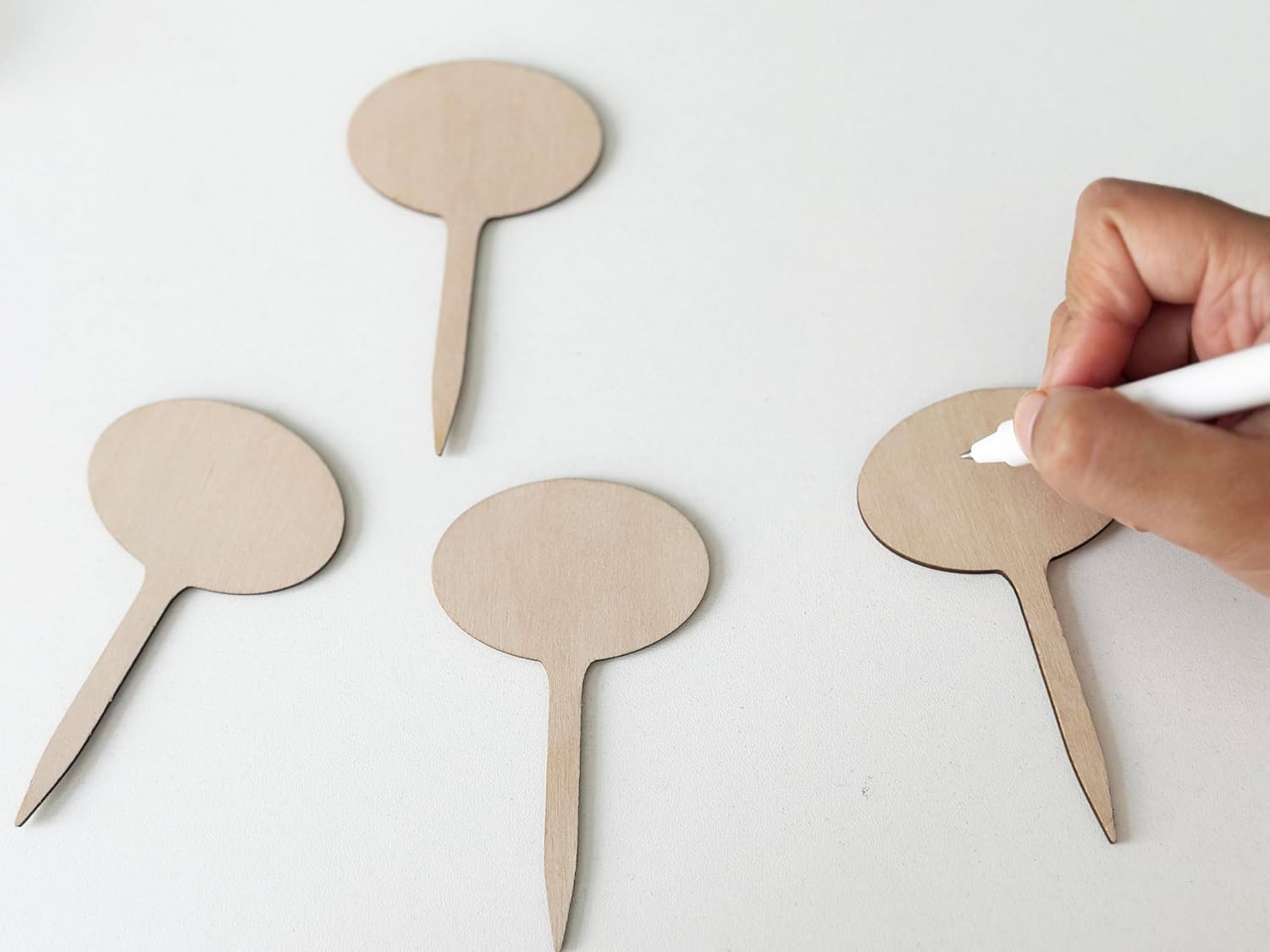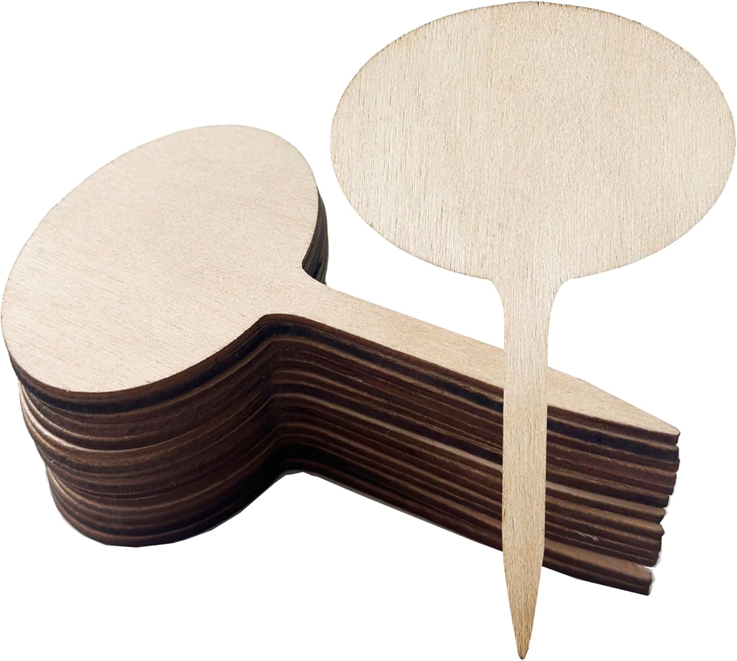 100 Pcs Wood Plant Labels, Natural Wooden Plant Marker Garden Sign Tags, T-Type Garden Markers for Succulents, Herbs, Seedlings, Potted, Flowers, Vegetables (Oval)