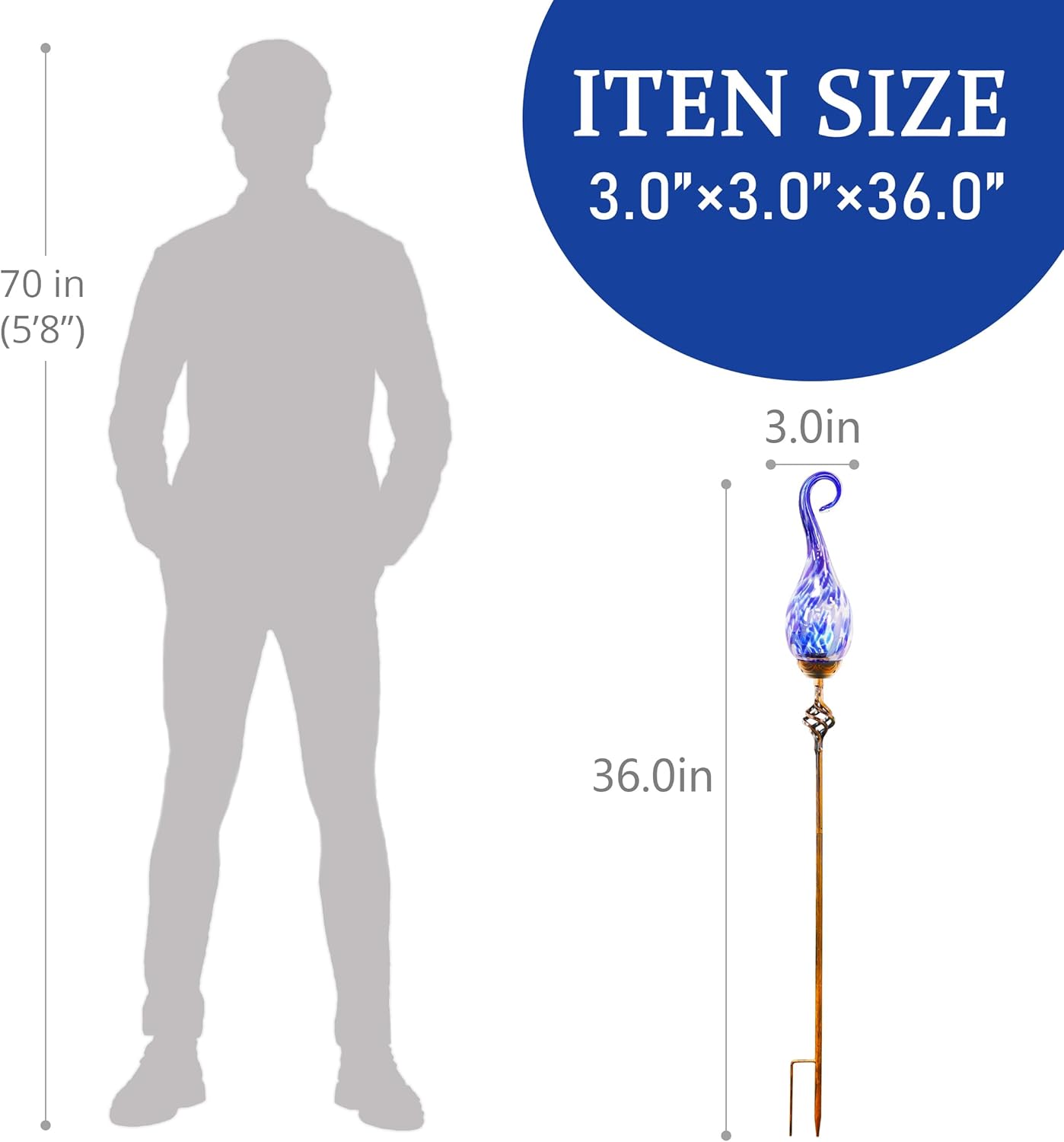 - HANDCRAFTED GLASS DURABLE: Our decorative plant stakes are made of beautiful and intricate color infused by hand blown glass, UV treated to prevent fading, and are designed with a striking metal tip for added elegance and resistance to outdoor elements; Our premium materials ensure our decorative stakes are able to withstand a wide range of outdoor weather conditions