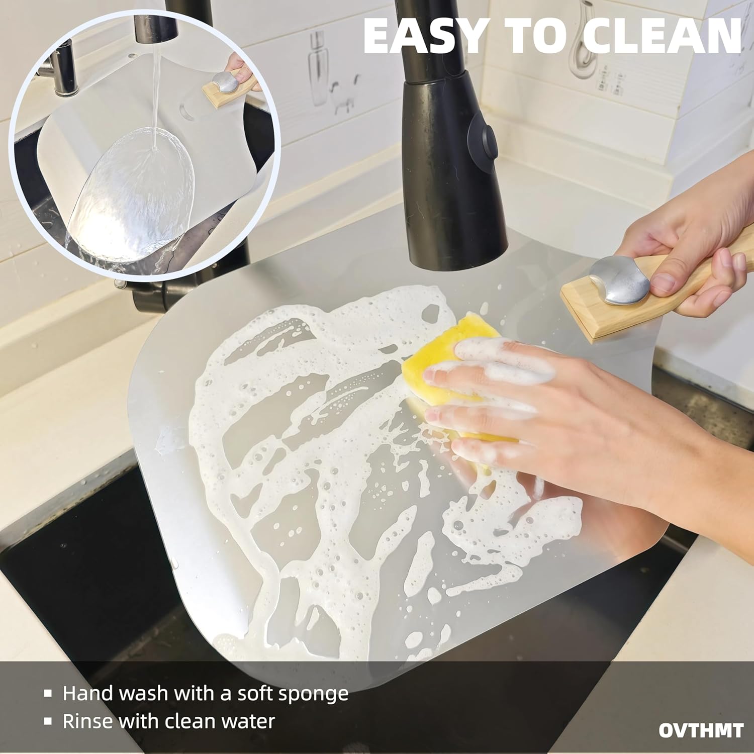 - EASY TO CLEAN: Our 14" pizza peel is easy to clean after use. Just hand wash with a soft sponge and rinse with clean water. The aluminum pizza peel is rust-resistant, and it is an ideal pizza spatula paddle for oven.