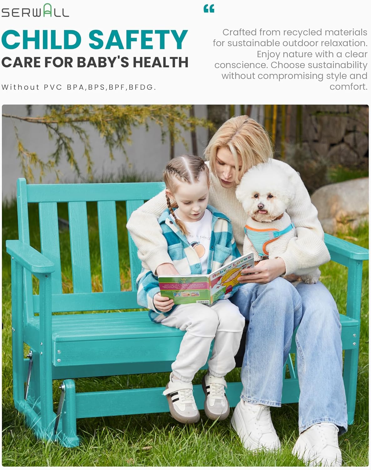 SERWALL 2 Person Patio Glider Bench, HDPE Material Weather-Resistant Swinging Bench for Outdoor Porch Garden, Aruba