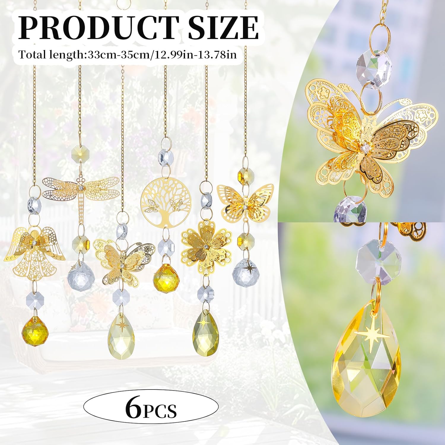 6pcs Yellow Crystal Suncatchers for Window Hanging Ornaments Garden Sun Catchers with Crystals Rainbow Maker Indoor Outdoor Decor
