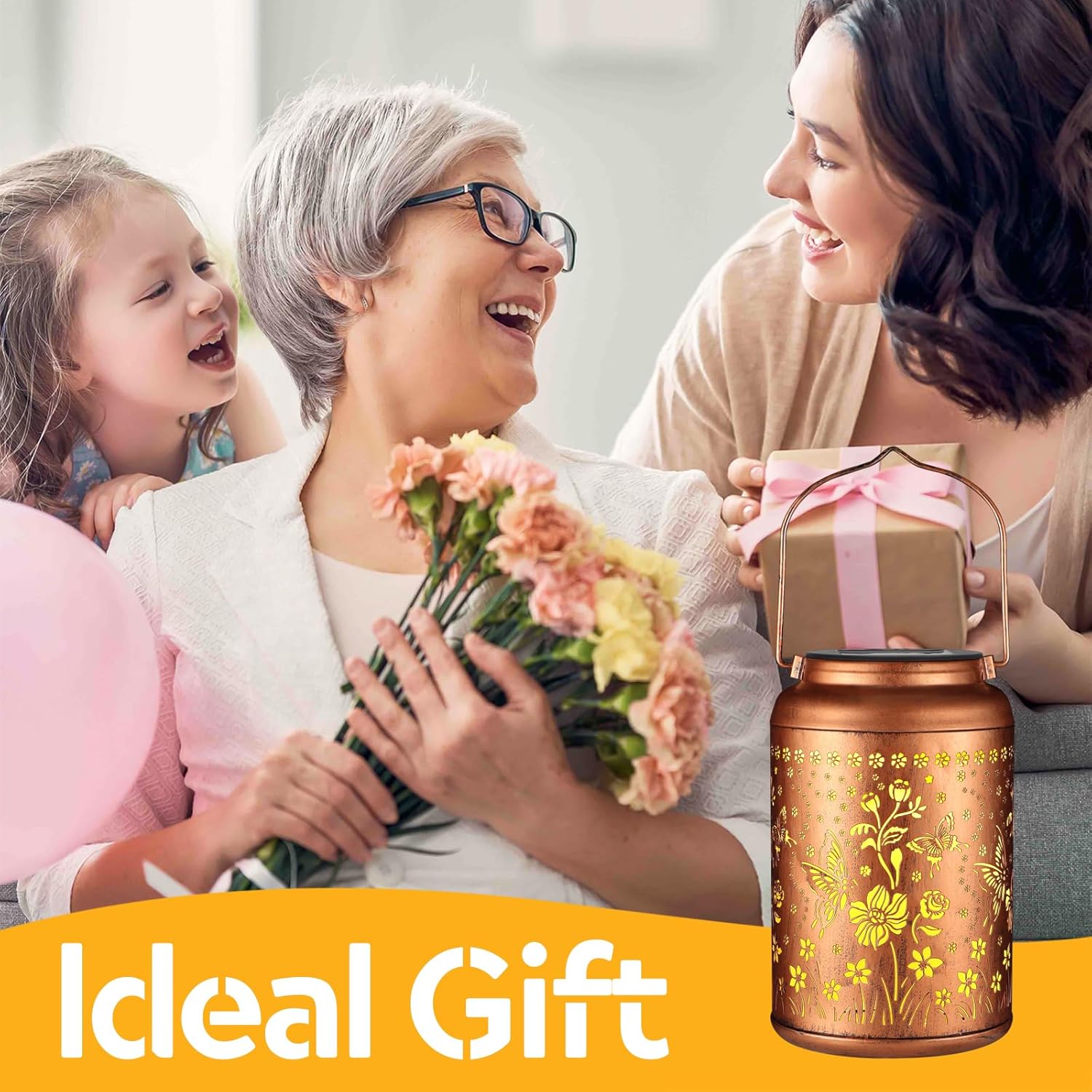 2 Pack Solar Lanterns Outdoor Waterproof, Butterflies Garden Decor Gifts for Women Mom Grandma Hanging Solar Lights Metal Decoration Outside for Yard, Patio