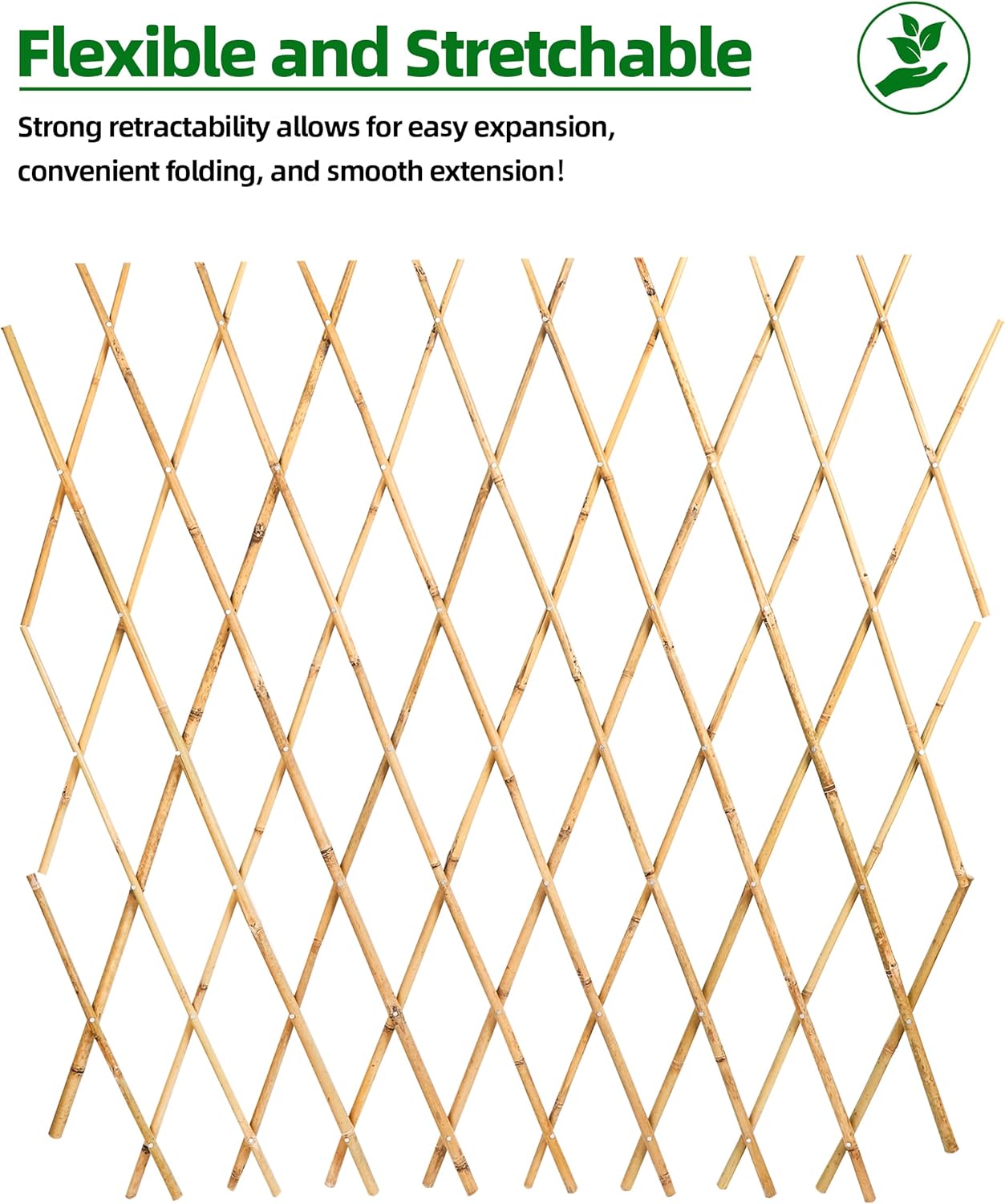 - High-Quality Bamboo Material: This expandable bamboo trellis is crafted from 100% real bamboo, carefully selected from the subtropical monsoon climate region. Bamboo is known for its strength, flexibility, and durability, ensuring long-lasting performance across multiple seasons