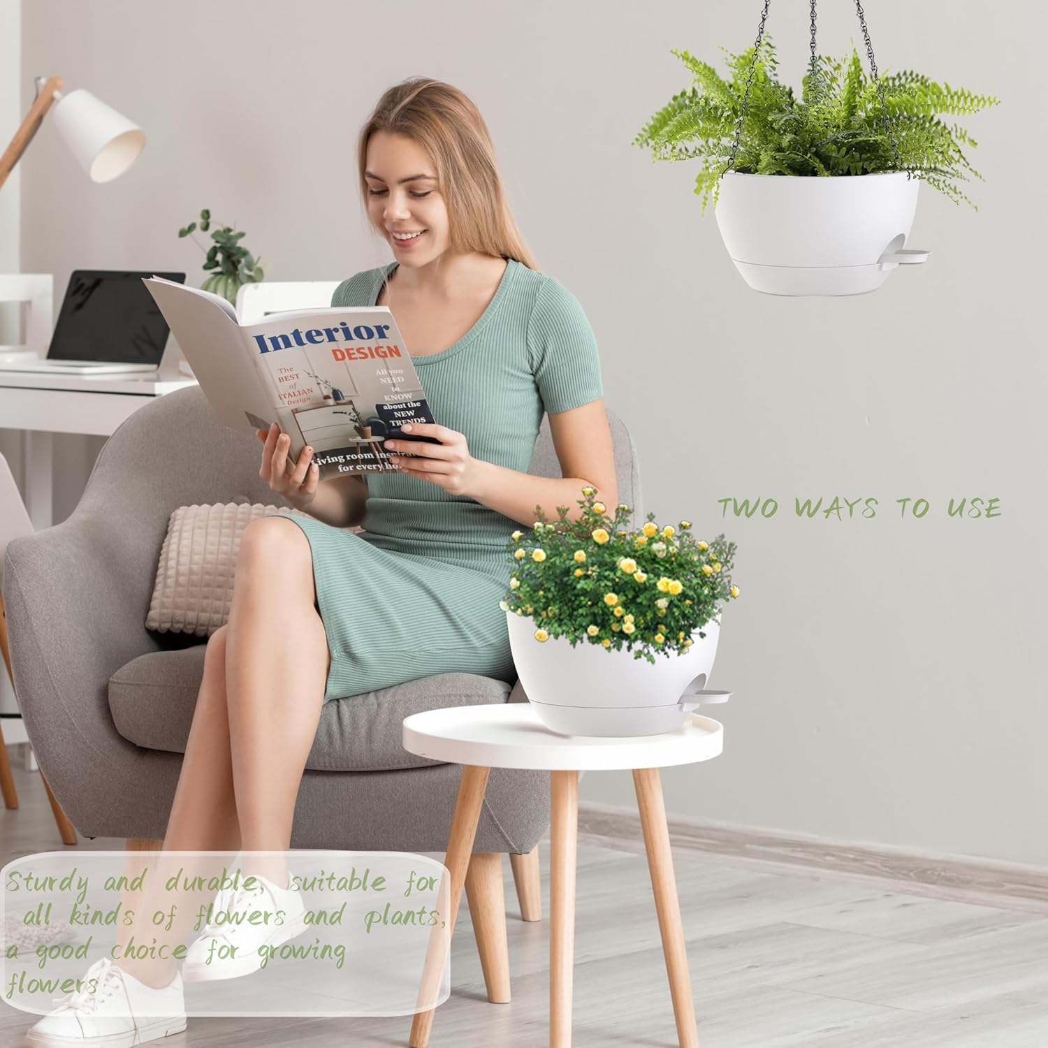 - 【Self-Watering Hanging Flower Pots with Removable Saucer】the appearance and structural design of the Hanging Pot prevents overwatering and acts as a water reservoir to promote Plant growth. It is suitable for a variety of Hanging Pot Plants, such as ivy, Herbs, Ferns, Philodendrons, Succulents, Flowers or other Plants