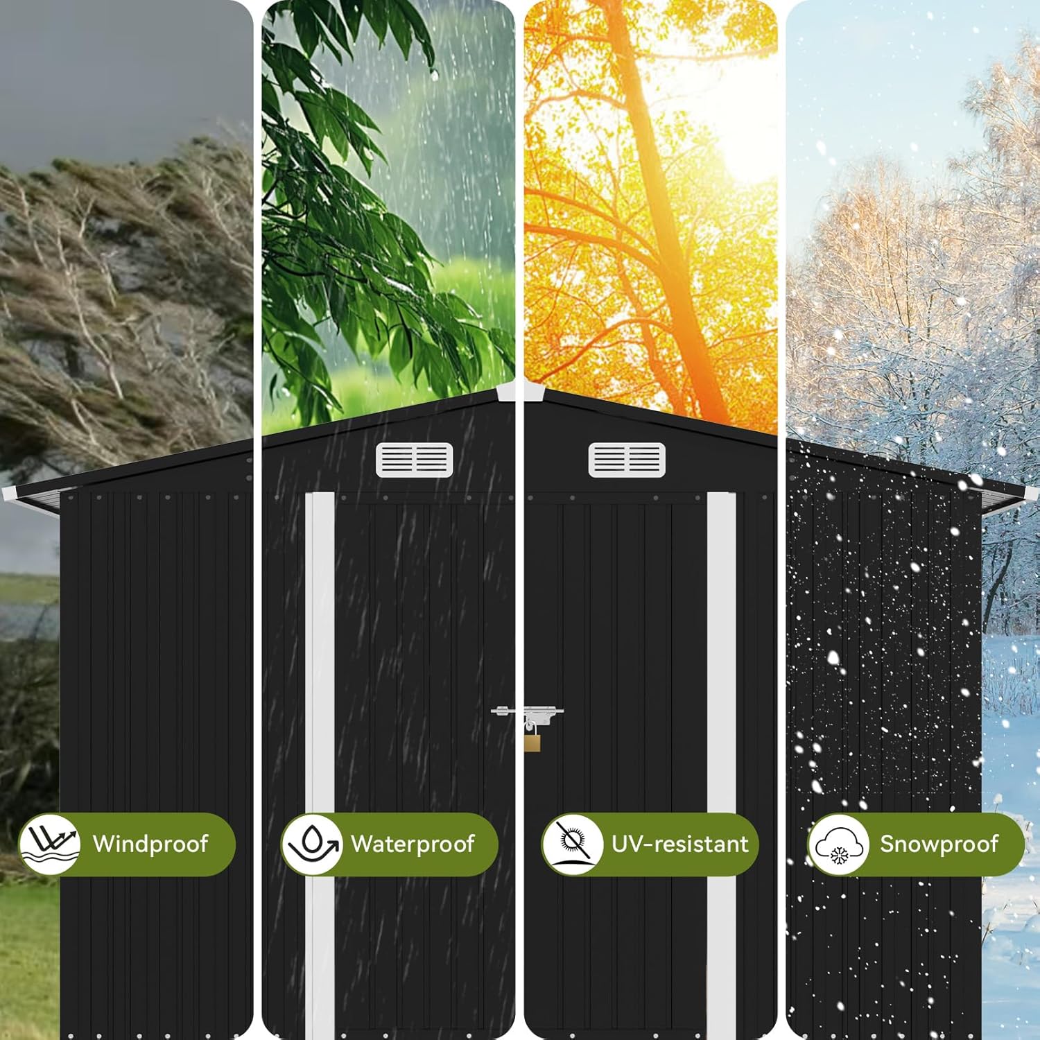 - Waterproof Tool Shed:The sloping roof design of this storage outdoor shed maximizes space utilization;effectively direct rainwater away from the structure to prevents the leakage,Don't worry about your items getting wet