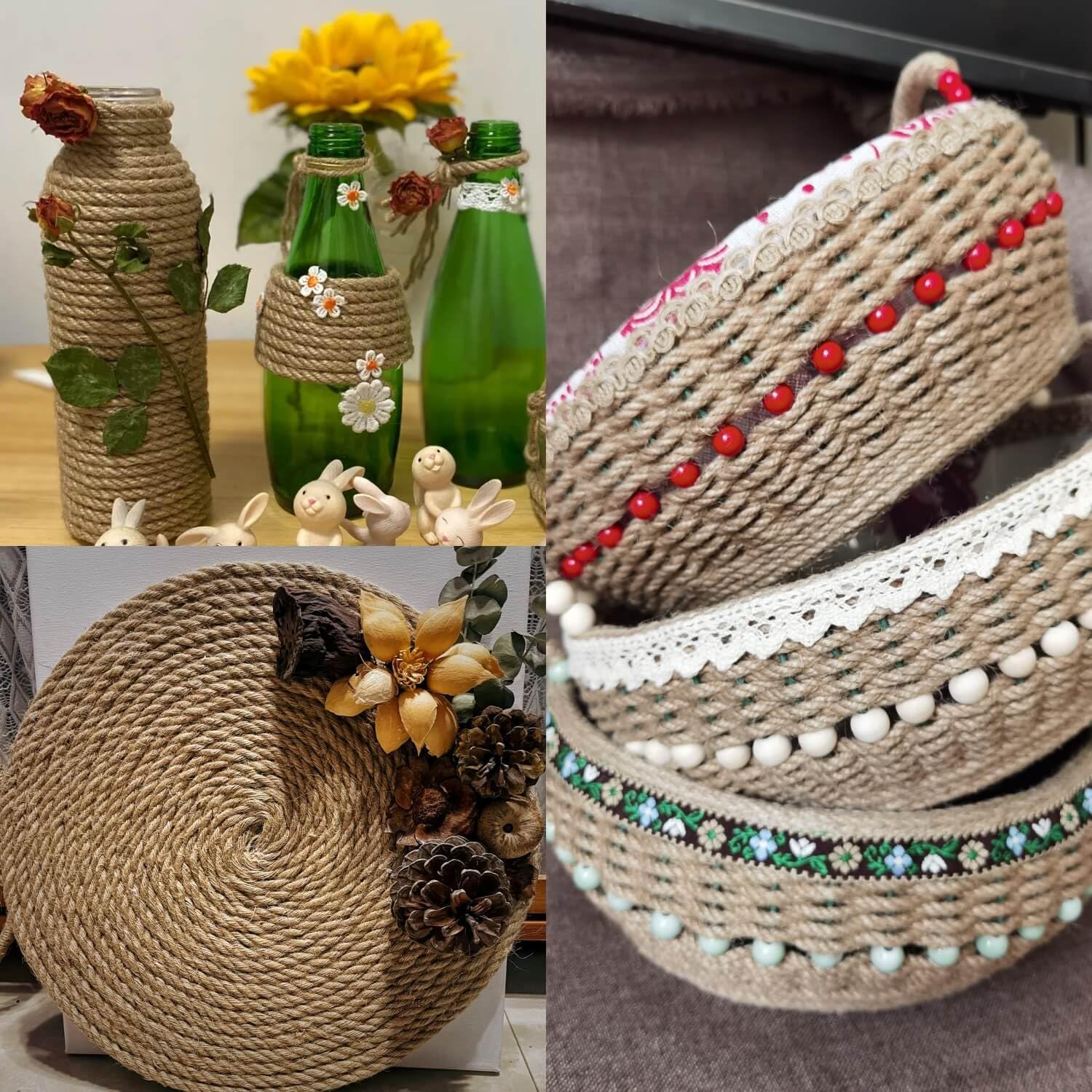 - MULTI-PURPOSE CREATIVITY UNLEASHED - From crafting rustic wedding centerpieces and wrapping stair handrails to DIY cat scratch posts and fabric-wrapped wall art, this jute rope adapts to endless projects. Use it for plant grafting, balcony guardrail protection, or even eco-friendly gift wrapping—creativity knows no bounds.