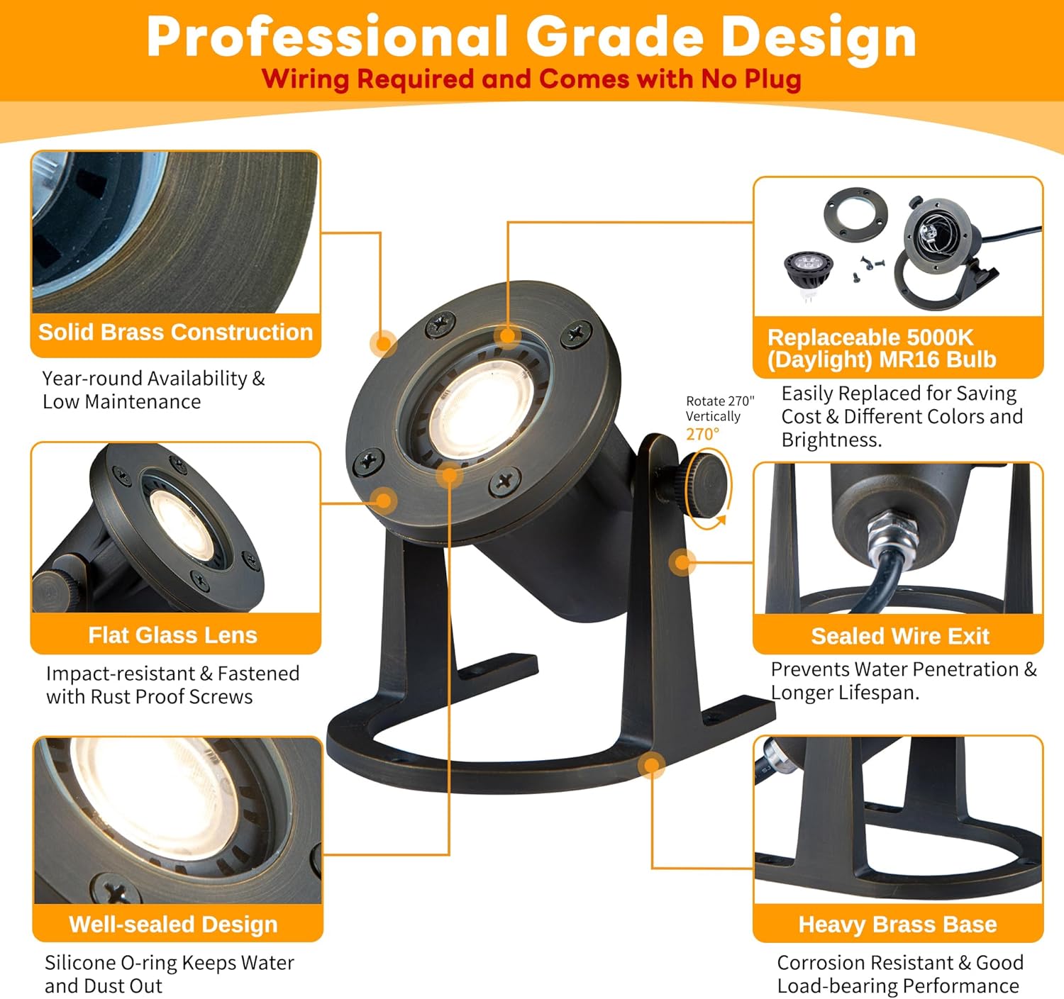 - ππππππππ ππππππππππ: Each LED pond light includes a high-quality 5W MR16 LED bulb, emitting a charming glow. The head is 270Β° adjustable, allowing you to precisely guide a 45Β° beam. This is an ideal light that can highlight the beauty of your yard.