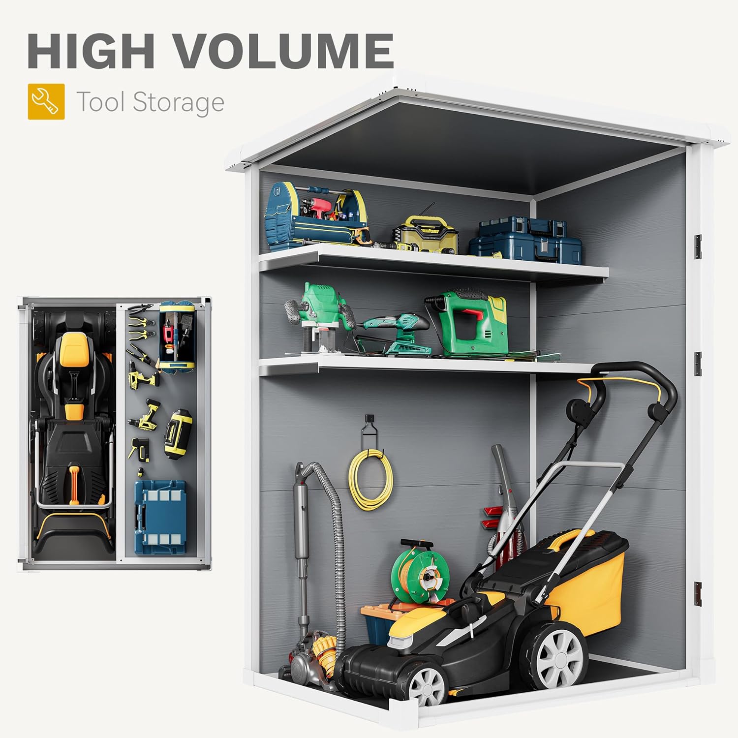 - Easy and Safe Access: This garden shed outdoor storage features double doors (23.6''L x 53.5''H each) for easy entry, even for large items; The lockable latch (lock not included) adds extra security for backyard, garage, or patio storage.Please note that for logistical purposes, the product will be delivered in two packages that may arrive at different times