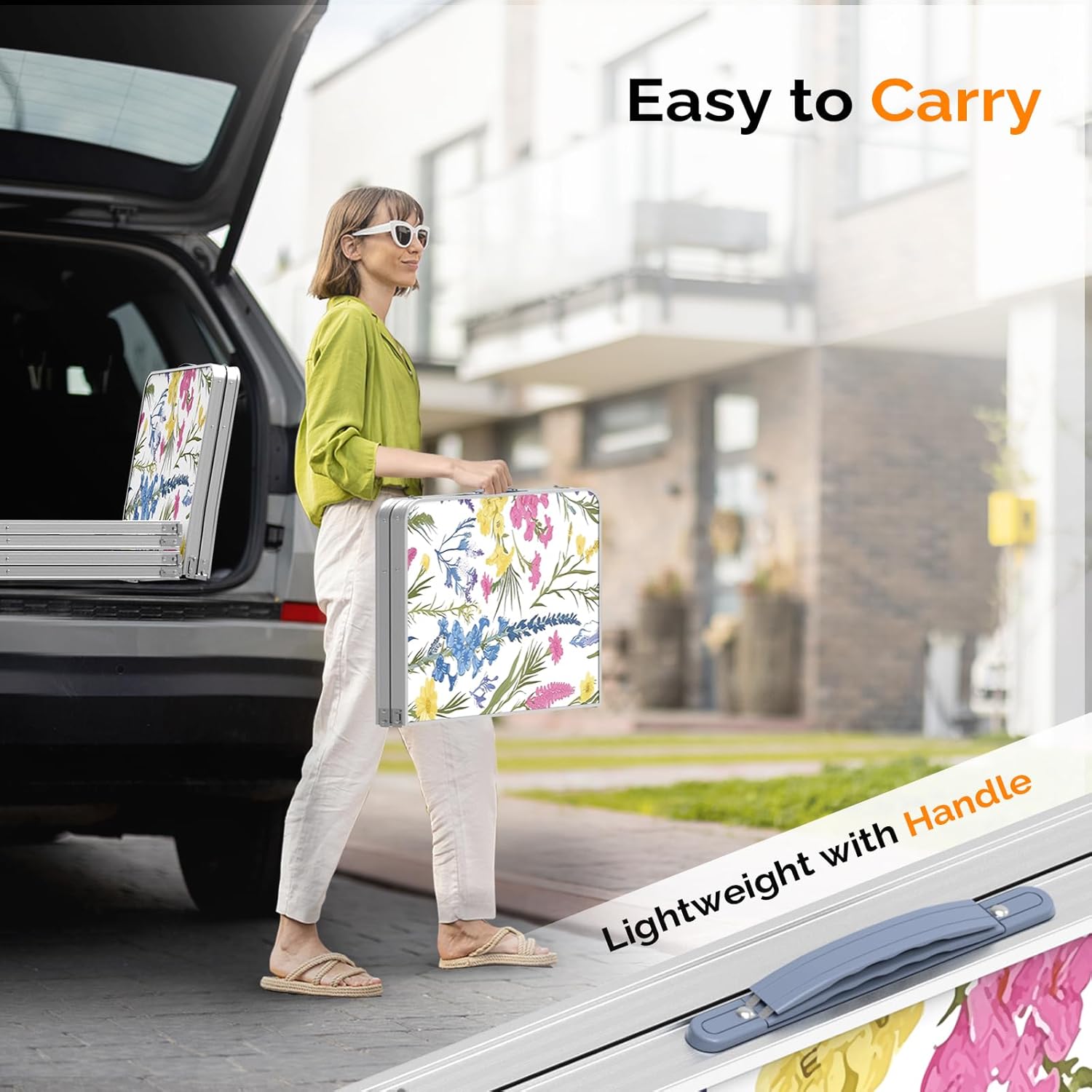 - LIGHTWEIGHT&FOLDABLE: MDF tabletop and aluminum feet make its weight just 8.1 lbs. The feet could be set off and tabletop could fold in half, foldable like suitcase(23.6”*17.7”). It is convenient to carry it to anywhere with its soft carry handle.