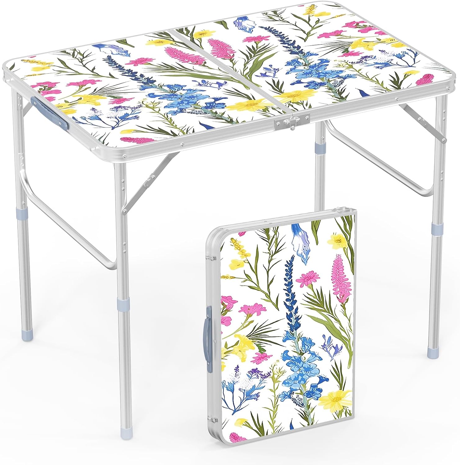 VINGLI 3FT Small Folding Camping Table Adjustable Height Aluminum Folding Table for Picnic Party BBQ, Plastic RV Suitcase Table Portable Lightweight Fold Up Utility Outdoor Tables