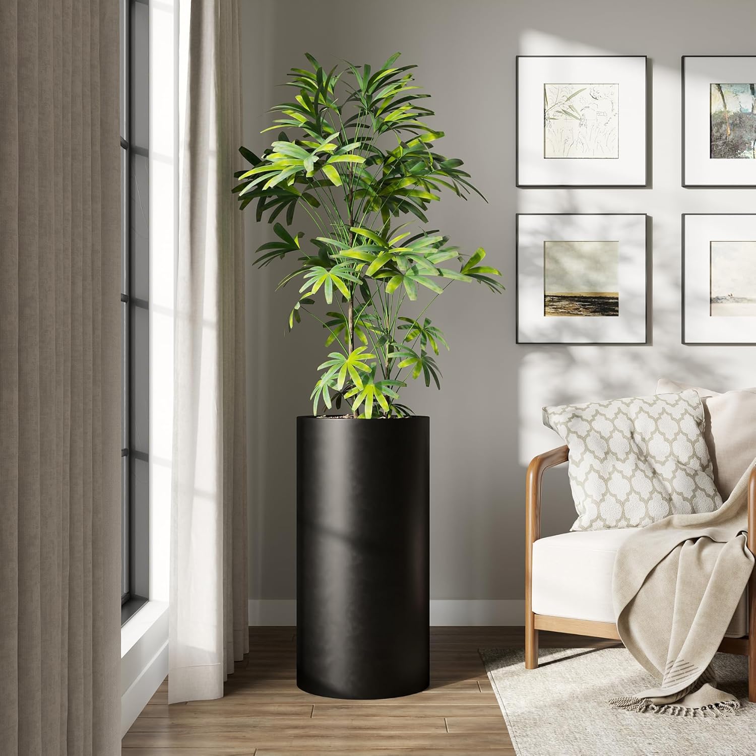 - ๐๐๐๐๐ฅ ๐๐จ๐ซ ๐๐ง๐๐จ๐จ๐ซ & ๐๐ฎ๐ญ๐๐จ๐จ๐ซ ๐๐๐๐จ๐ซ: Perfect for contemporary spaces, this planter is suited for a range of settings-from terraces to living rooms. Whether used among other outdoor planters or displayed individually, itโs a great choice for those seeking tall planters for outdoor plants. This design also pairs beautifully with plant pots indoor with drainage and complements greenery indoors with ease.