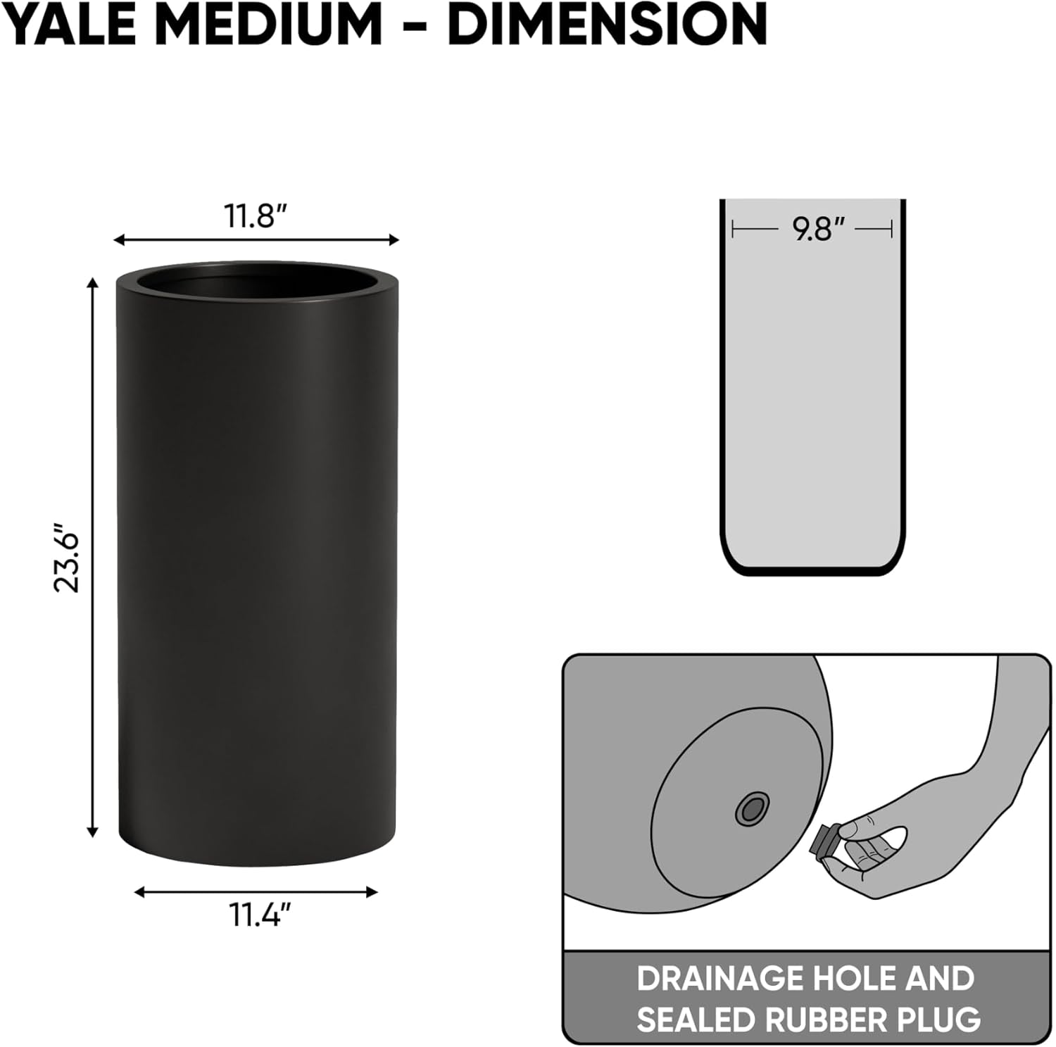DTY Signature Mount Oxford Tall Outdoor Planter - Medium Black 23.6 Inch Height Modern Tall Planter Pot for Indoor & Outdoor Spaces - Stylish Planter for Contemporary Homes and Gardens