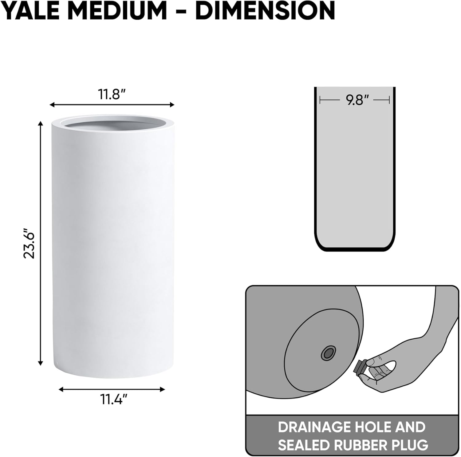 DTY Signature Mount Oxford Tall Outdoor Planter - Medium White 23.6 Inch Height Modern Tall Planter Pot for Indoor & Outdoor Spaces - Stylish Planter for Contemporary Homes and Gardens