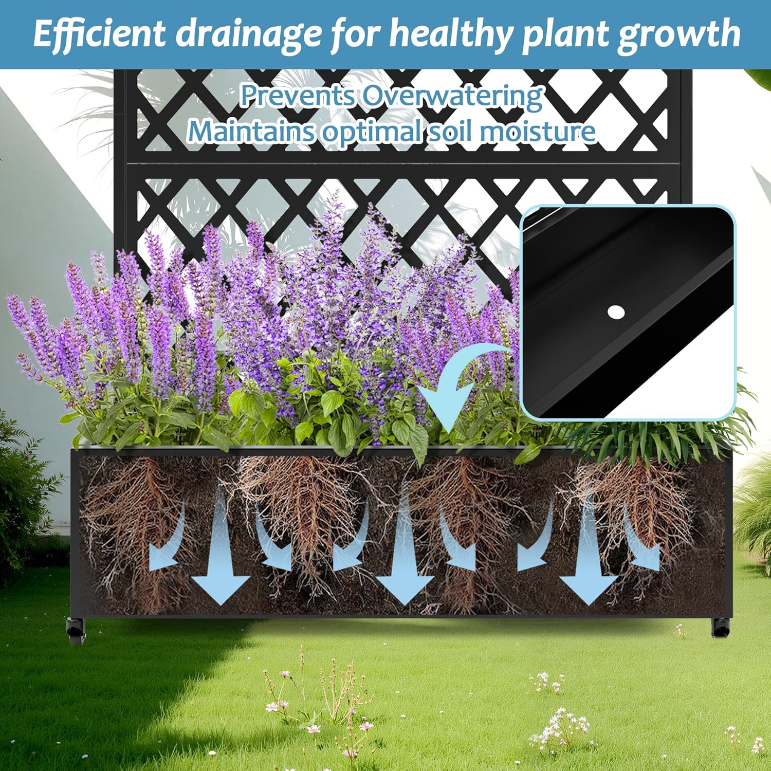 - Enhanced Drainage & Root Support: Designed with a deep planting bed, this raised planter allows roots to grow freely while promoting healthy plant development. Integrated drainage holes help regulate moisture levels by preventing overwatering and water buildup, creating an ideal environment for thriving vegetation