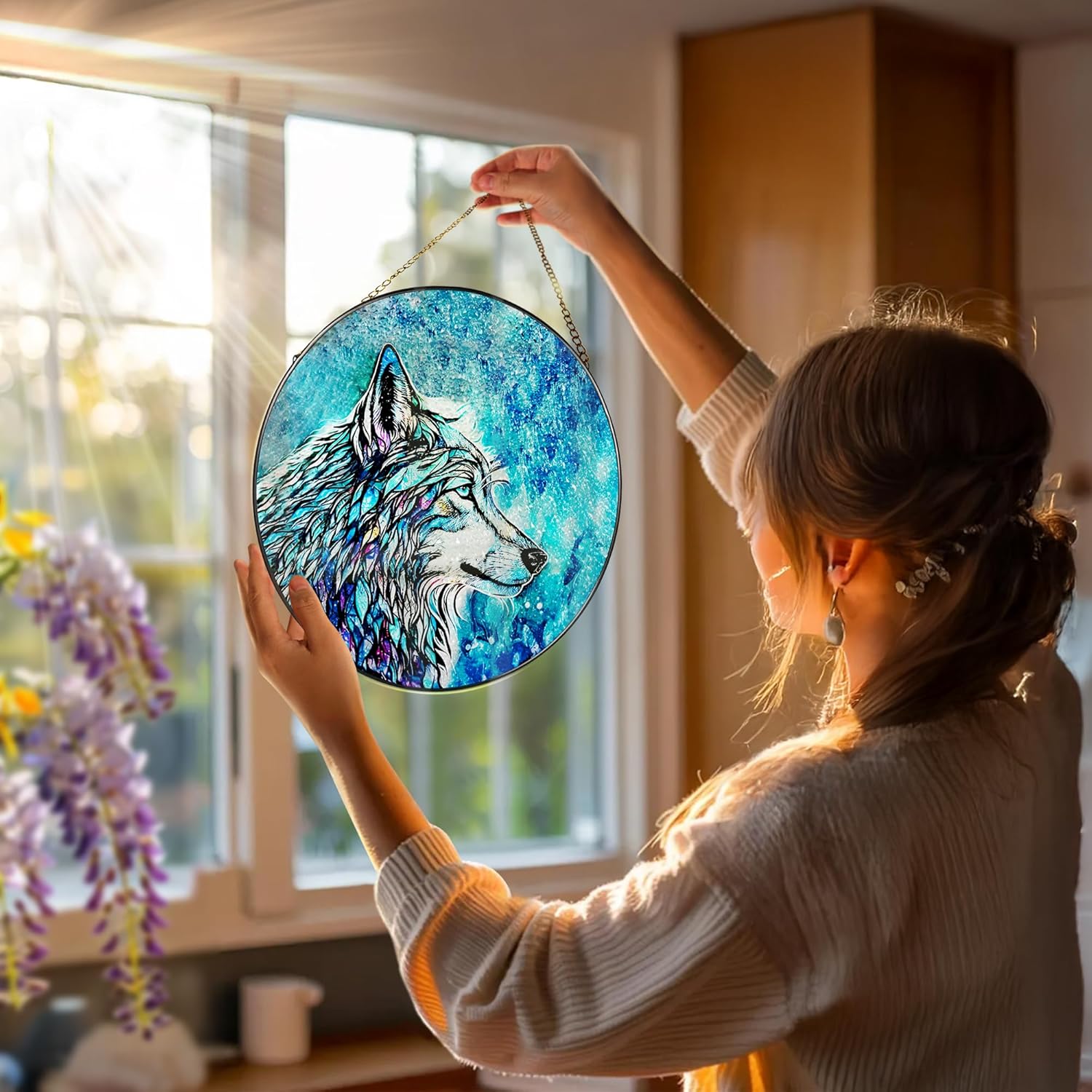 Stained Glass Window Hanging, Stained Glass Suncatcher, Wolf Sun Catcher, Window Hanging Decor, Wolf Lover Gift, Gifts for Fathers Day or Mathers Day, Christmas or Birthday Gift, Gifts for Women Men