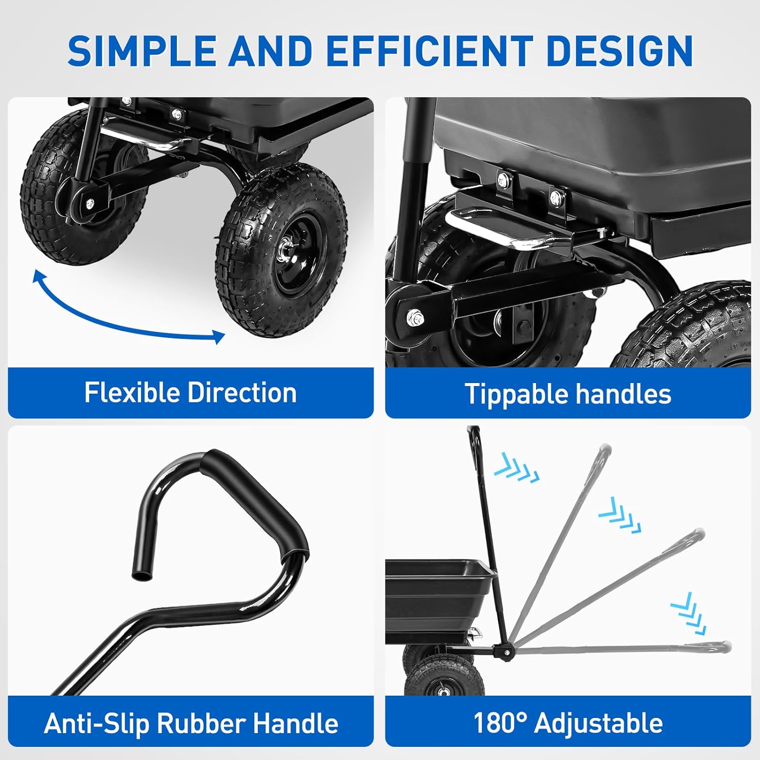 - 600LB Heavy-Duty Capacity – Built with strong steel frame and rust-resistant paint, this cart holds up to 600 lbs (3.3 cu. ft.) for tough outdoor jobs