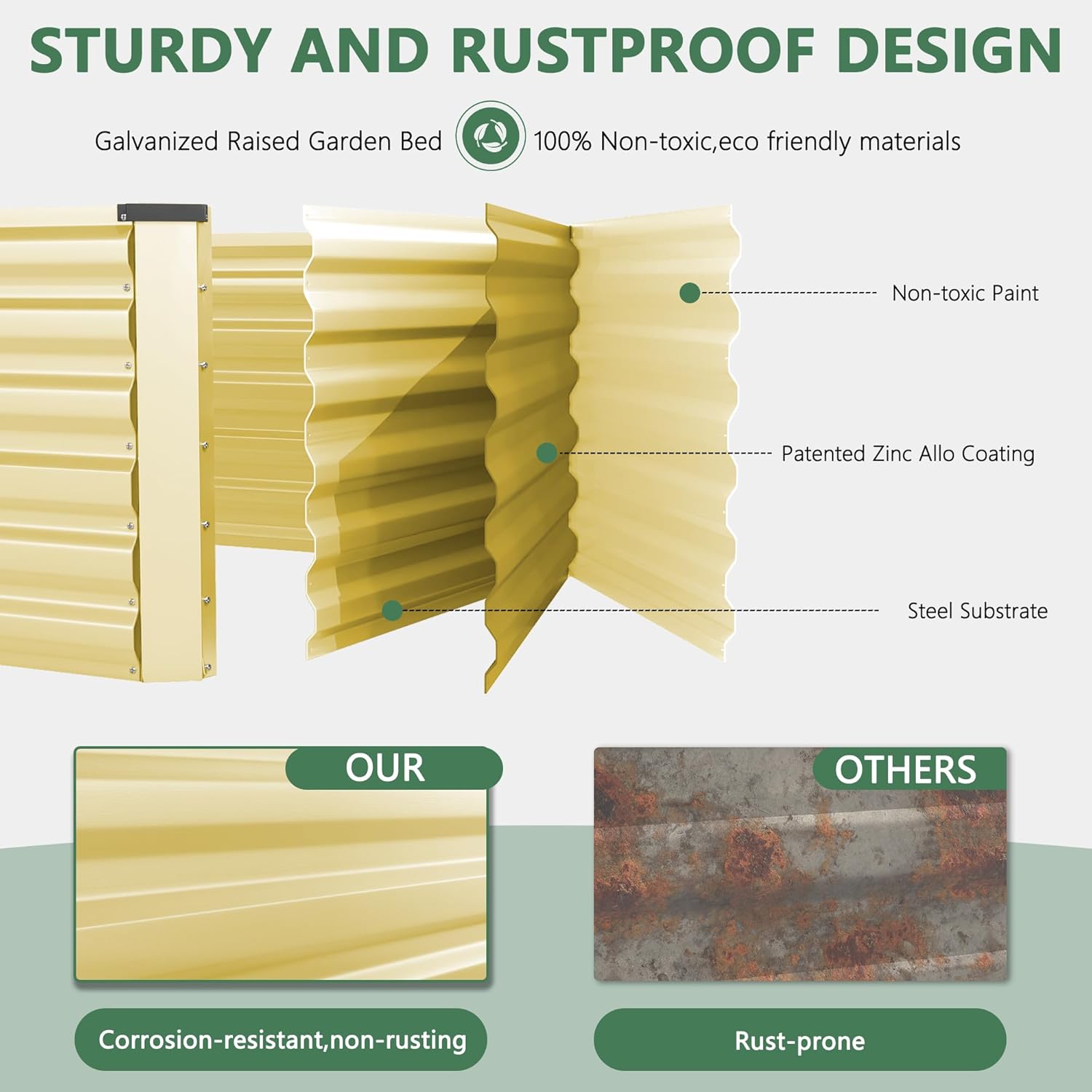FOOWIN 2pcs 8x4x2ft Galvanized Raised Garden Bed, Planter Raised Garden Boxes Outdoor, Large Metal Raised Beds for Gardening, Garden Bed for Vegetables, Flowers, Herb,478 Gallon Capacity, Cream Yellow