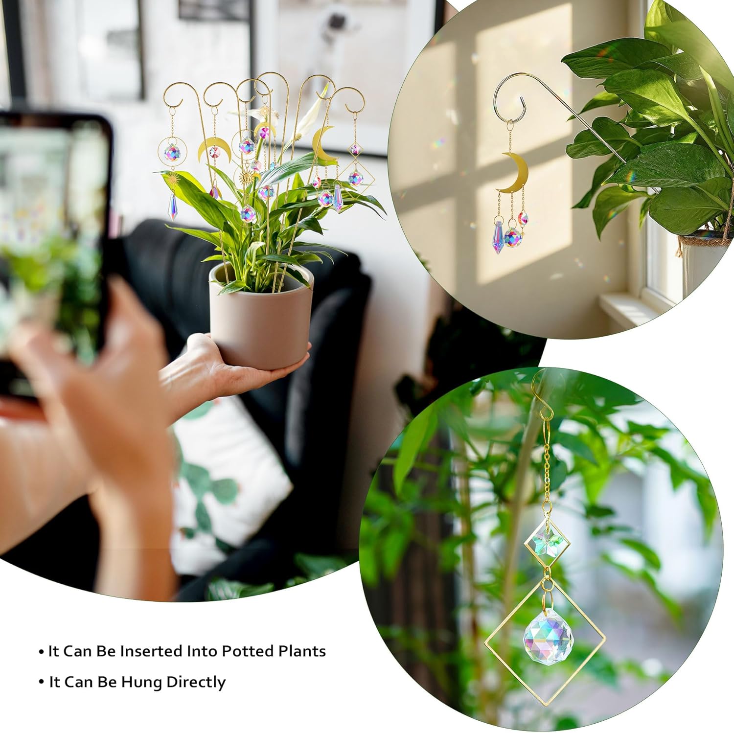 - Plant Suncatchers: Upgrade your indoor gardening with our Sun Catcher plant stakes. 6pcs suncatcher length: 4.1in/5.3in/5.5in/5.5in/5.9in/6.3in, 6pcs plant stake: 13.8in tal