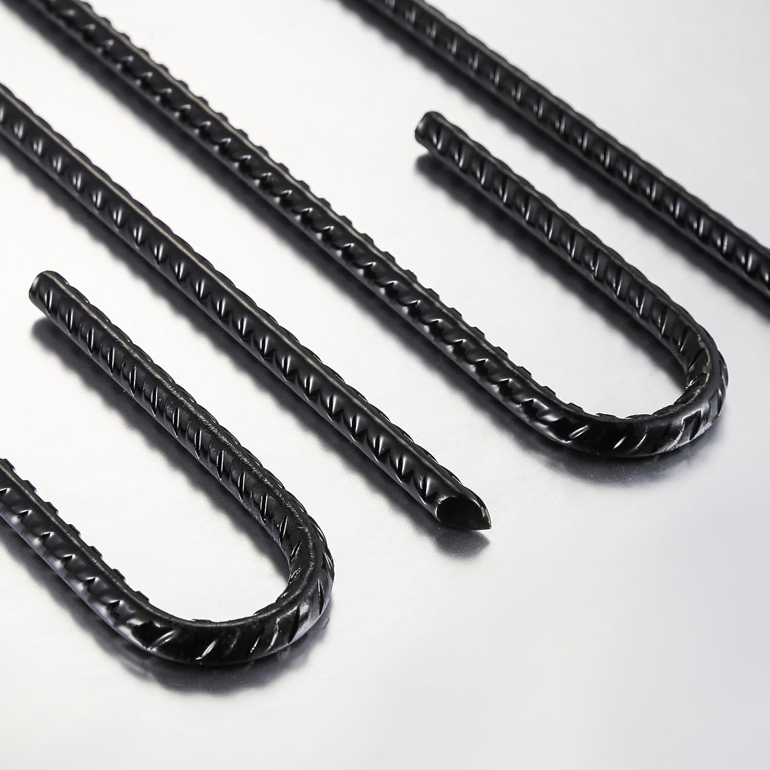 Rebar Stakes U/J Hook Extra Heavy Duty,(50pcs) 12 inch x 1/4 inch Rust Proof Coated Steel Ground Stakes Ground Anchors, Garden Stake Metal Stakes Tent Stake Trampoline Anchors (U-Hook)