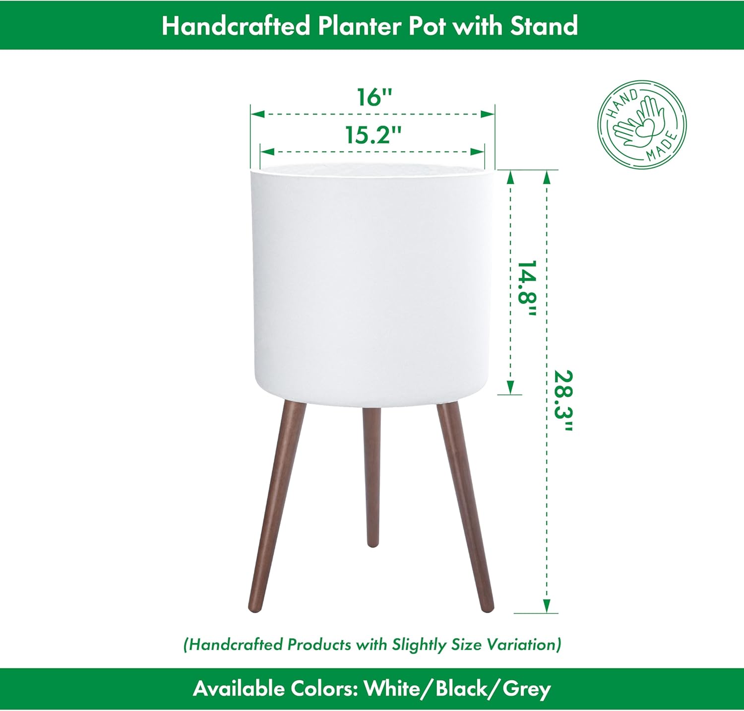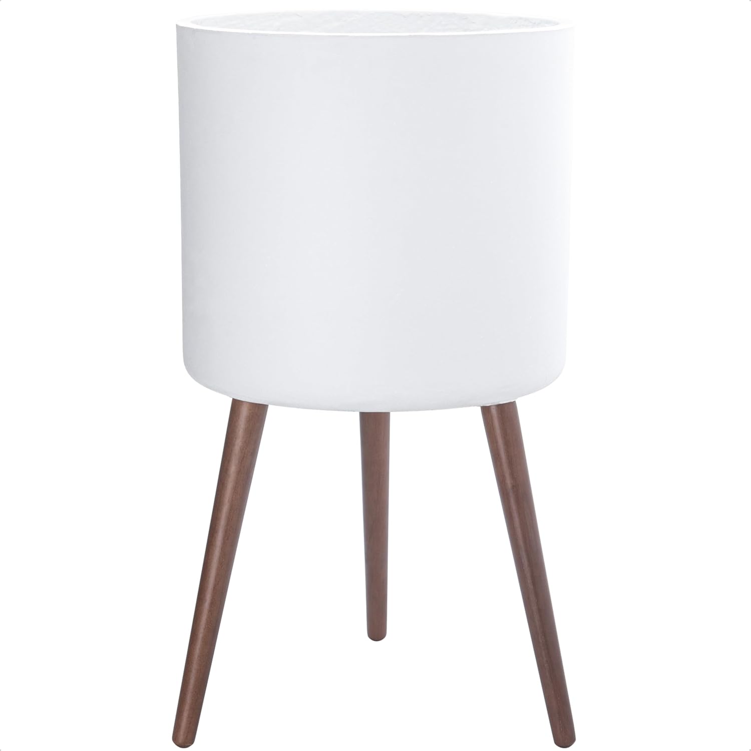 D'vine Dev 16 Inch Planter Pot with Stand, Mid-Century Tall Plant Pot with Legs for Indoor Plants, XX-Large, White, 88-O-E-1