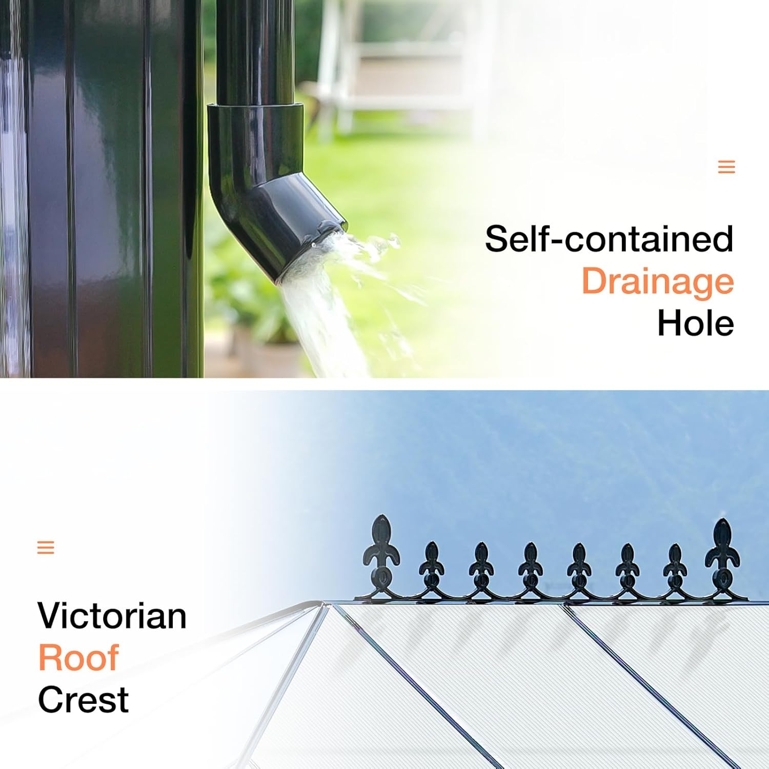 - Premium Material: The garden greenhouse equipped with 6mm Twin-wall translucent PC panels(UV Protection 99.99%), a rust-resistant aluminum frame (1.5mm),4 upgraded, thickened, and wider uprights, ensuring robustness and long-lasting durability