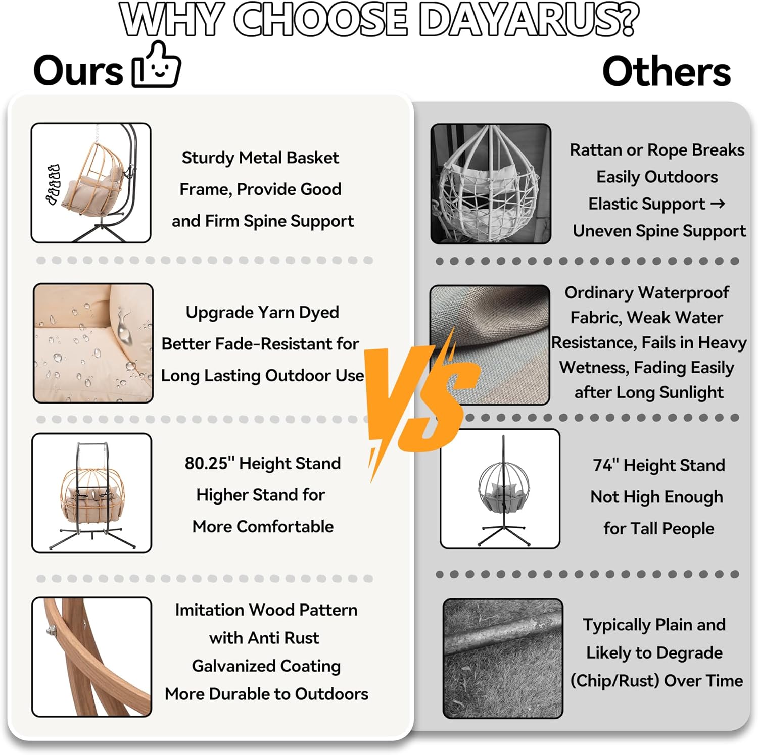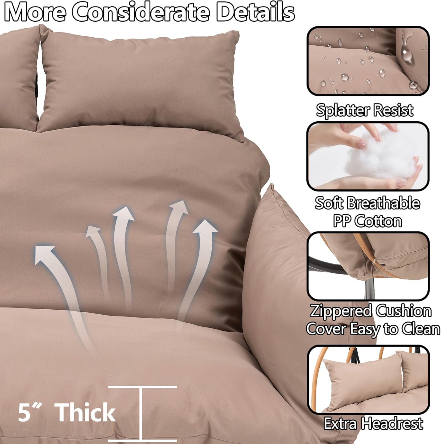 - Upgraded Quality: The outdoor egg chair has a fluffy cushion for soft sitting. its upgraded waterproof fabric resists sun, won't fade, suits all - weather use, and cleans easily, ensuring lasting outdoor use
