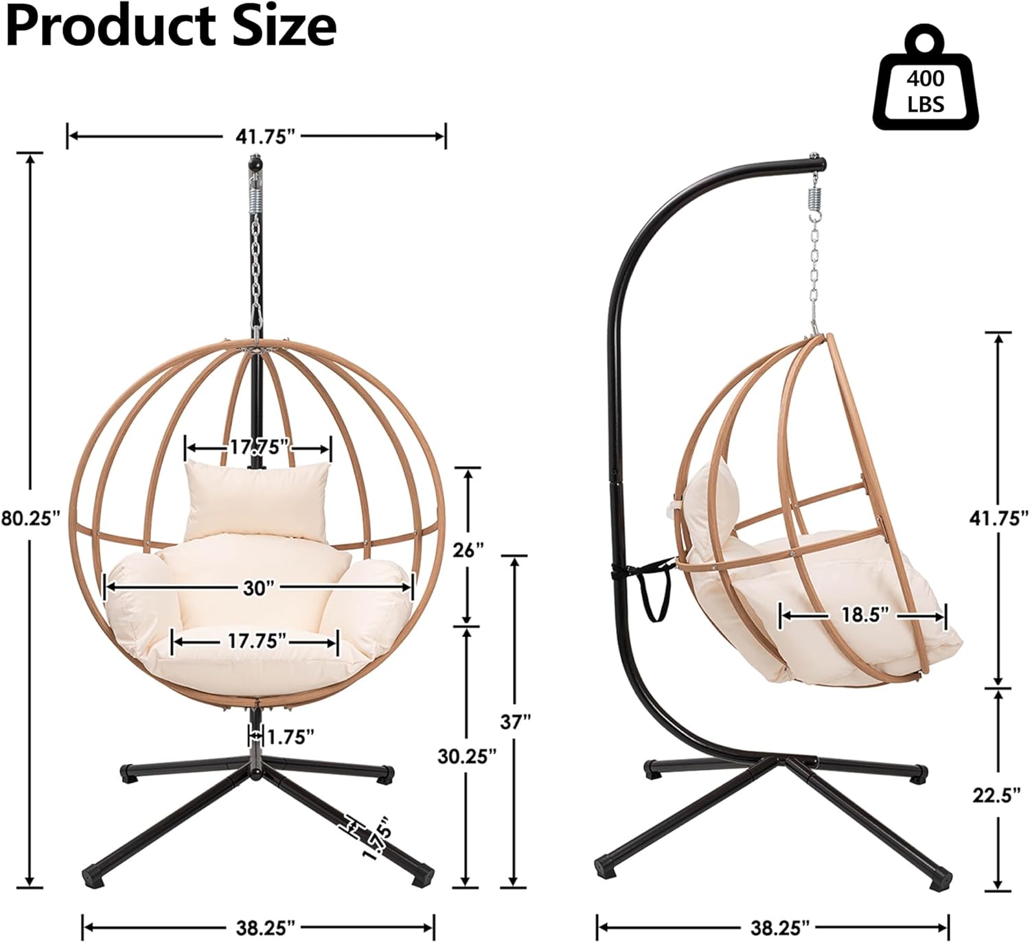 Egg Chairs Outdoor, Hanging Egg Chair with Stand, All Weather Swing Chair, Modern Swinging Egg Chairs Indoor, Metal Hanging Chairs with Cushions, Patio Lounge Chair for Balcony/Deck, Beige