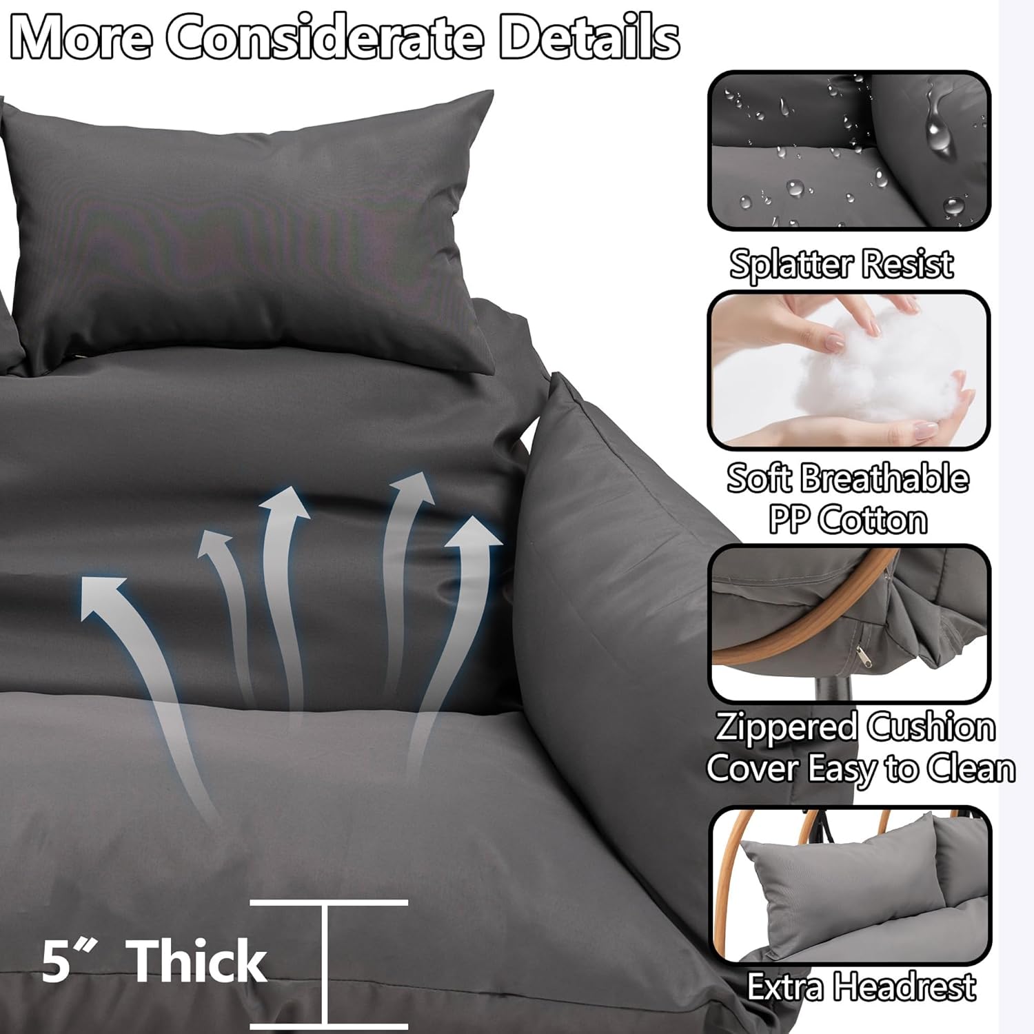 - Cozy Outdoor Seating: The double egg swing chair with stand, a 2 person patio swing chair, has a large seat and metal backrest. it offers great spine support, like a hammock swing for 2, very comfy