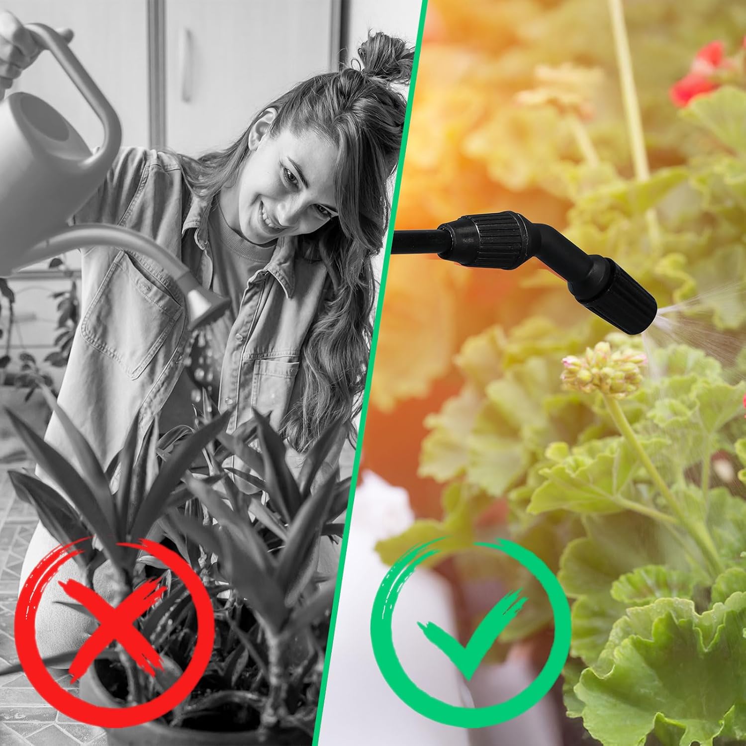 - Comfortable to Use: extra large bowl design, ergonomic pump handle can be tightened easily and firmly, funnel top design can limit splashing when filling, effectively prevent water overflow, save liquid; Convenient pouring, large handle can reduce hand fatigue during long-term use, translucent water tank with markings to simplify every gardening task