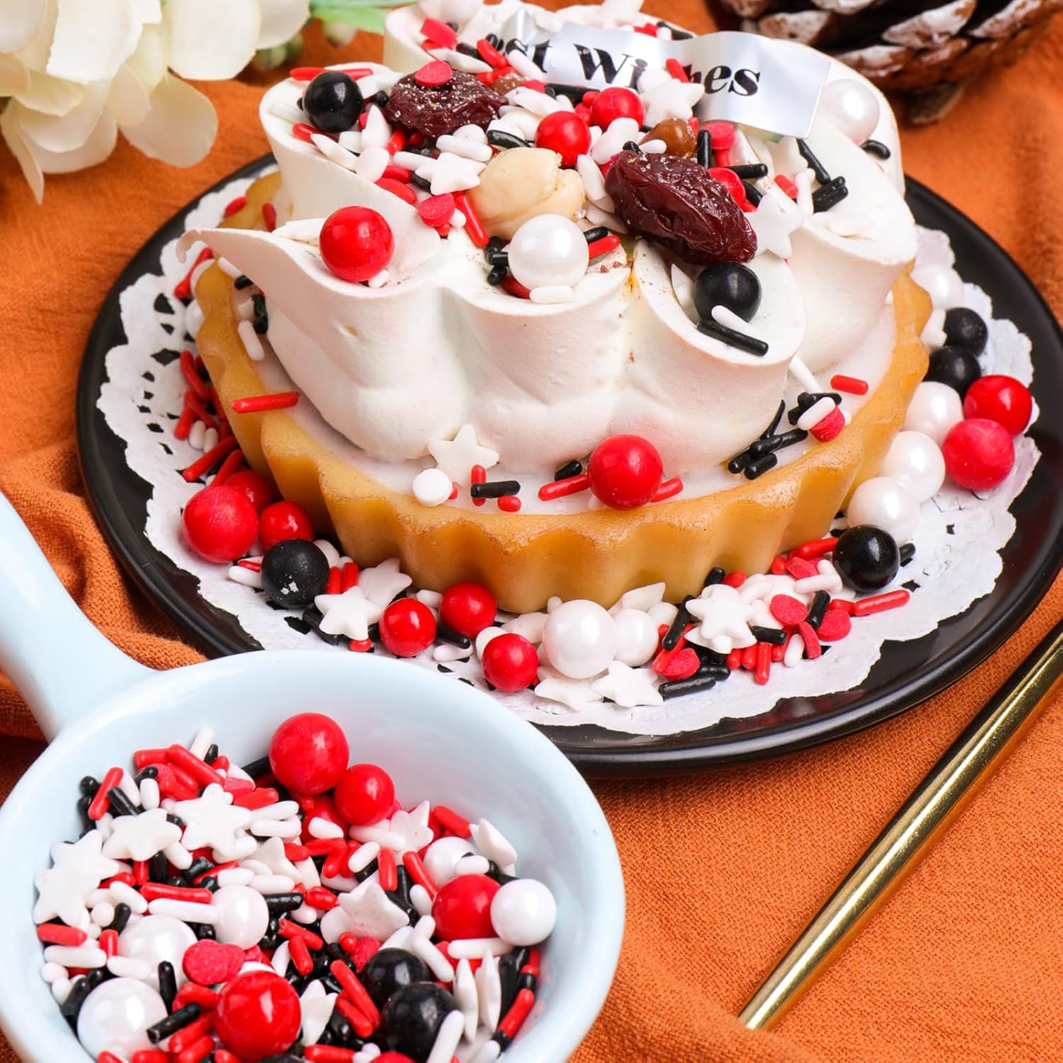 Red White and Black Sprinkles for Cake Decorating, Edible Sprinkle Mix, Perfect for Cake Decorations, Baking, Ice Cream, Cookies, Cupcake Toppers