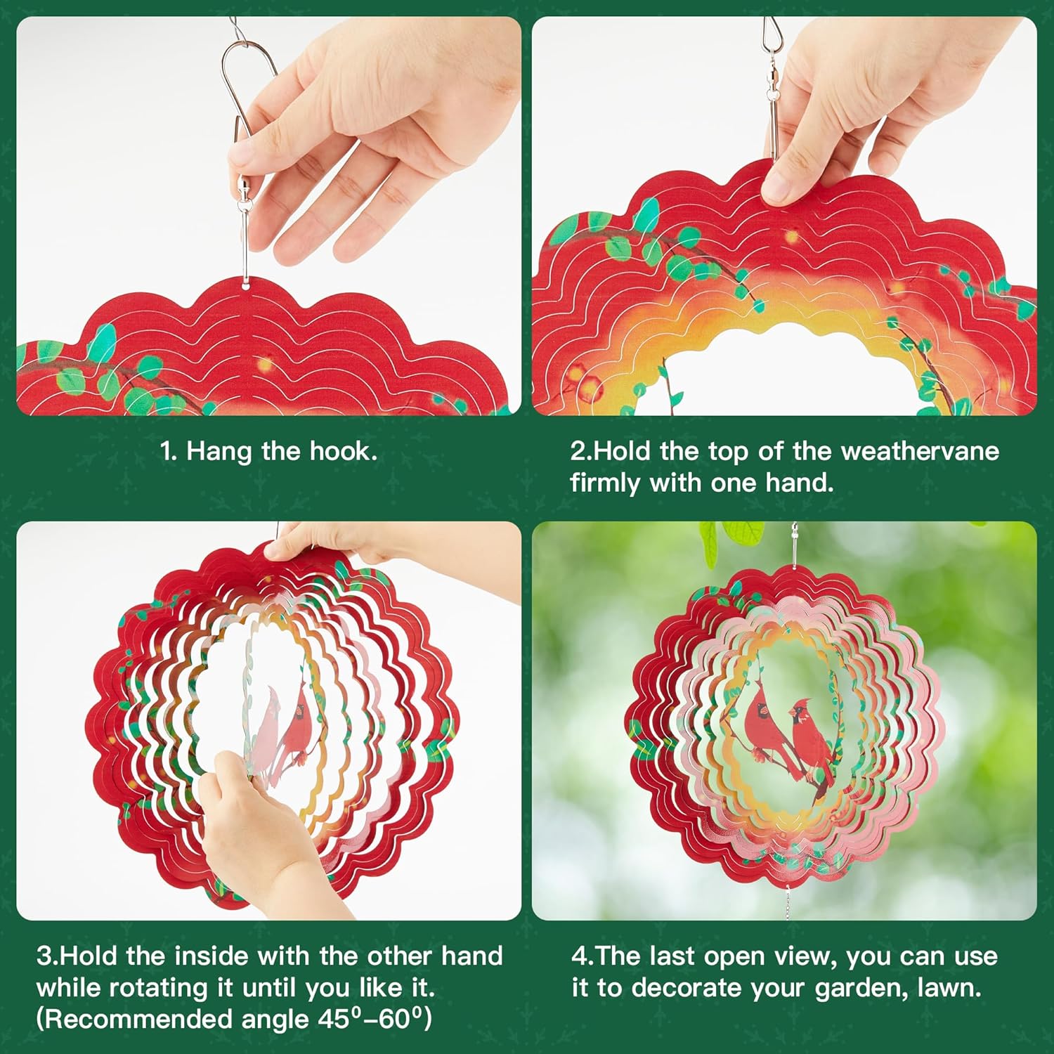 - Exquisite Pattern Design: The outdoor wind spinners features beautifully detailed cardinals that add vibrancy to any outdoor space. Perfect for hanging in your yard, garden, porch, patio or any indoor/outdoor space you desire.