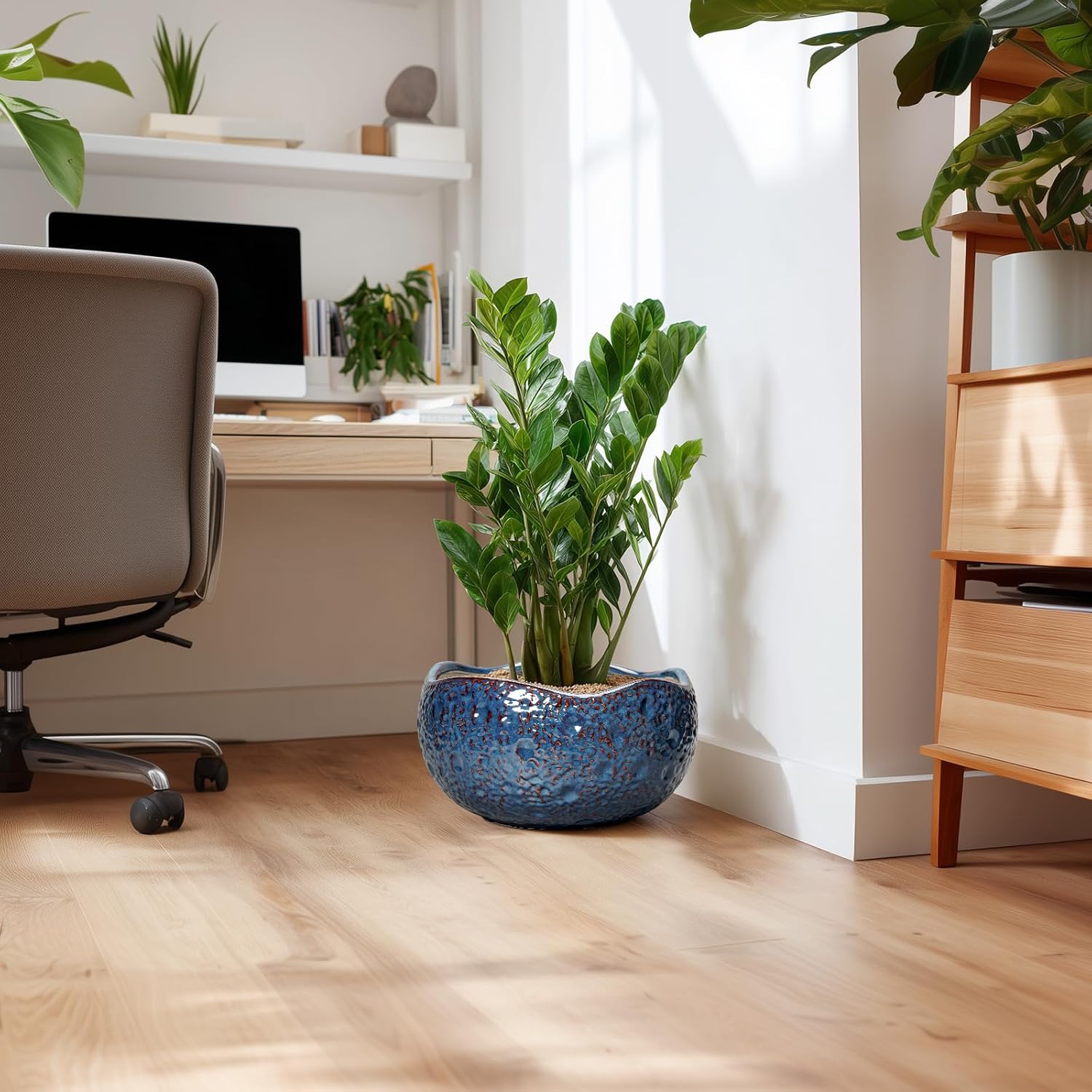 - Suitable for a variety of plants: This blue planter is an ideal choice for growing bonsai tree, snake plant, orchids, money tree, zz plant, monstera, peace lily, pothos, bired of paradise, fiddle leaf fig, pachira aquatica, succulent plants, cacti, aloe vera, mint, rosemary, african violet, rainlily, parsley, chrysanthemum, herbs, and other indoor & outdoor plants