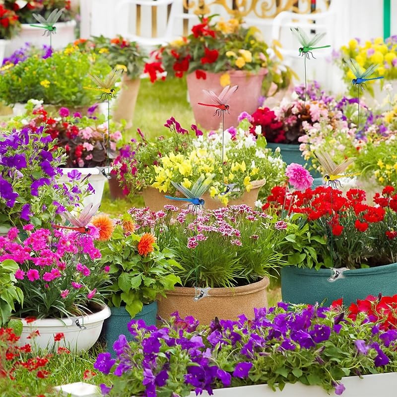 8PCS 3D Dragonfly Garden Decor Clips - Realistic Outdoor Insect Ornaments for Plants, Stakes & Fences | Fly Deterrent & Whimsical Yard Art