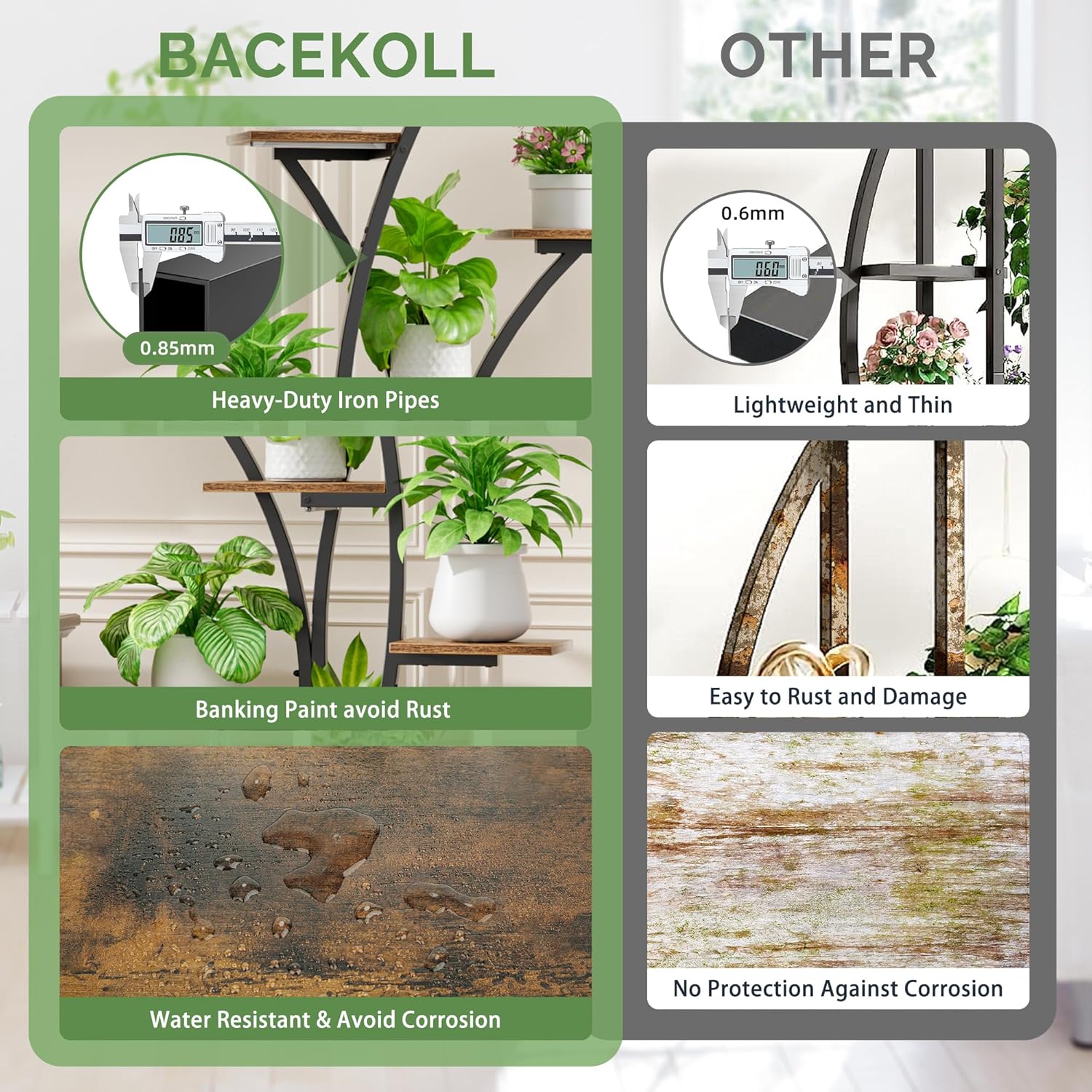 - Sturdy Construction: The frame of this plant stand is made of heavy-duty iron pipe that is 0.85mm thick, ensuring a robust structure and strong load-bearing capacity. These plant shelves are designed to support the weight of your potted plants without compromising stability