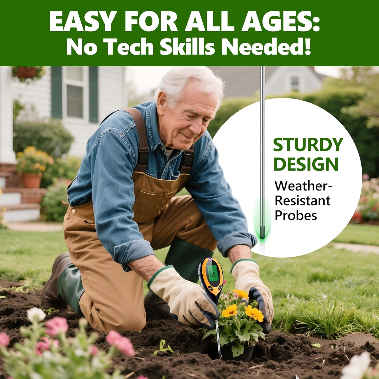 - 【FAST & HIGHLY ACCURATE】 Get instant, reliable readings with our soil moisture meter for plants! Advanced sensors ensure precise measurement of pH and moisture levels, while sensitive probes quickly detect ambient temperature and light intensity. Laboratory-level test results are reliable, fast and convenient.