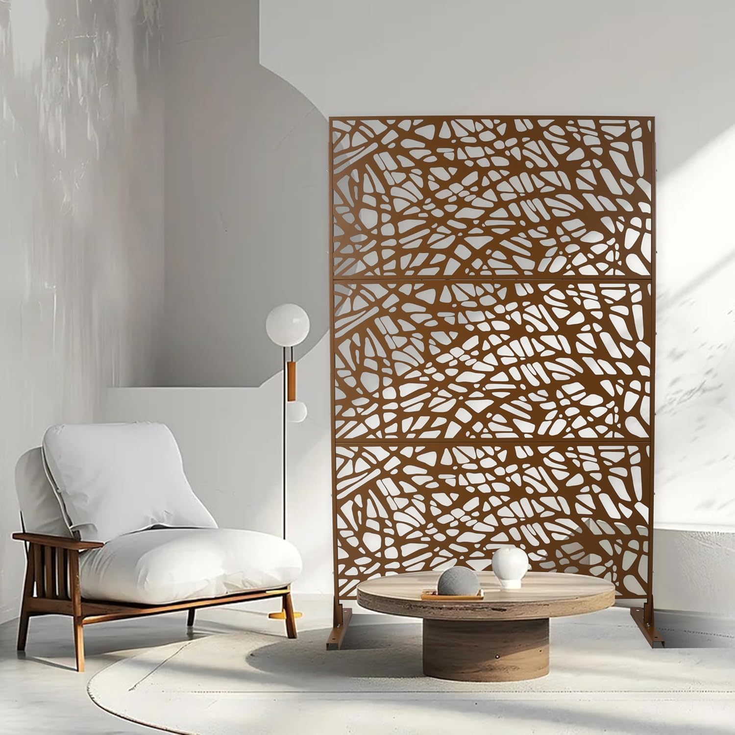 Metal Privacy Screens 76" H Outdoor Privacy Screens Panels Outdoor and Indoor Branch Pattern Divider Freestanding Decorative for Balcony Patio Garden Room Divider, Brown