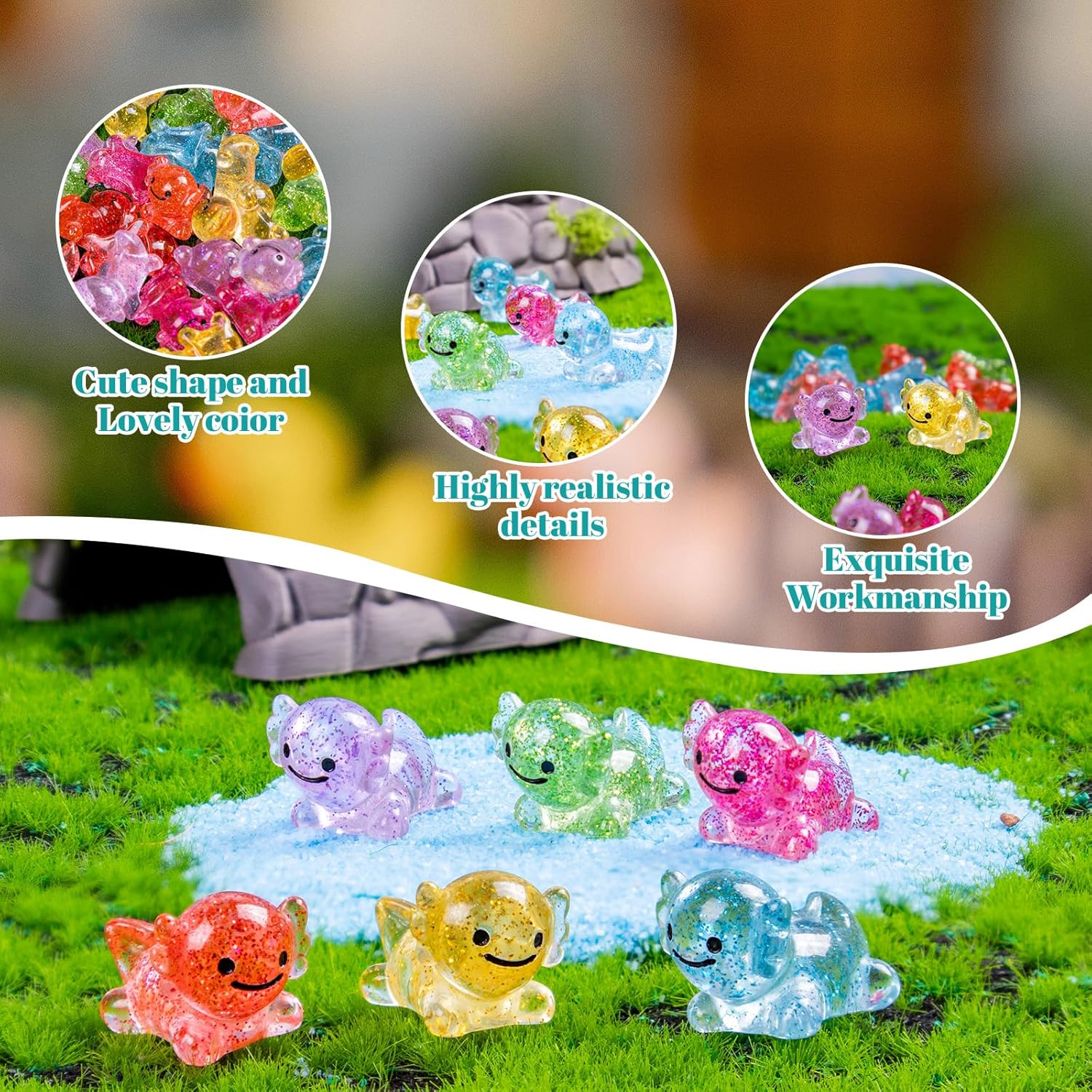 - 【You will get】: 60 mini resin colored glitter axolotl set,There are 6 color, each with 10 pieces,They have a uniquely cute design and are housed in a portable box
