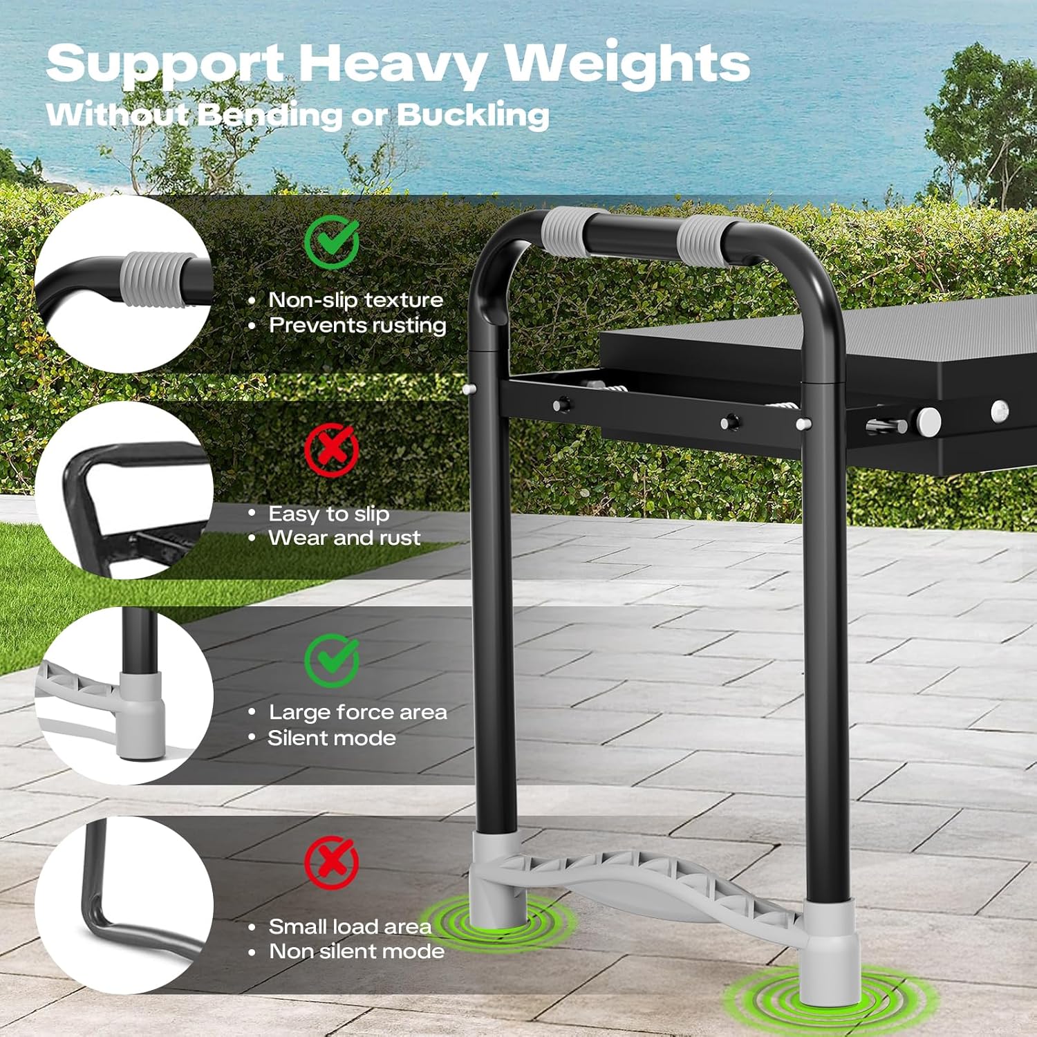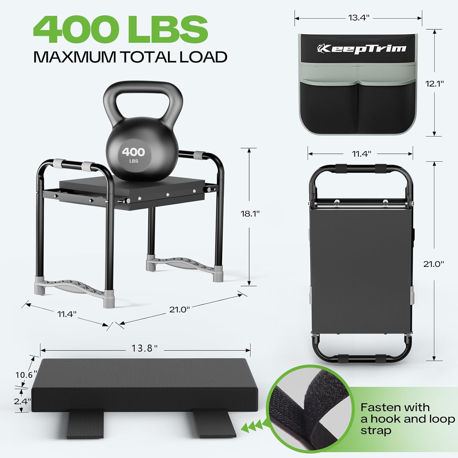 - ăHeavy-Duty with 400 lbs CapacityăMade with premium, sturdy stainless steel, this kneeler can hold up to 400 lbs. The thick removable cushion is covered with durable Oxford fabric. Waterproof, stain-resistant, and easy to clean. Reduces pressure on knees and key joints while offering long-lasting durability.